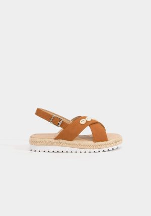 Sandálias camel c/ conchas