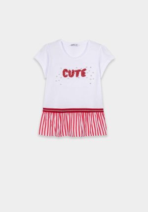 T-shirt branca c/ riscas vermelhas