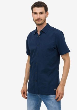 Camisa azul marino manga curta