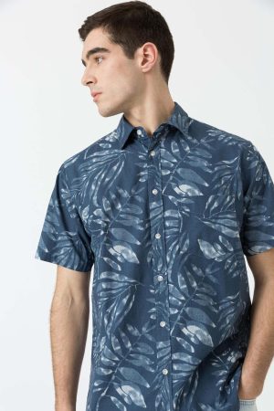 Camisa de manga curta c/ estampa azul