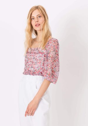 Blusa taçada em rosa floral