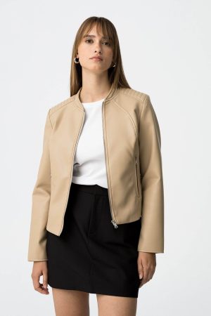 Blusão bege de ecopele