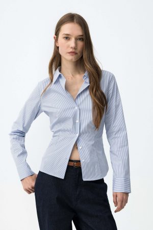 Camisa azul claro c/ folhos