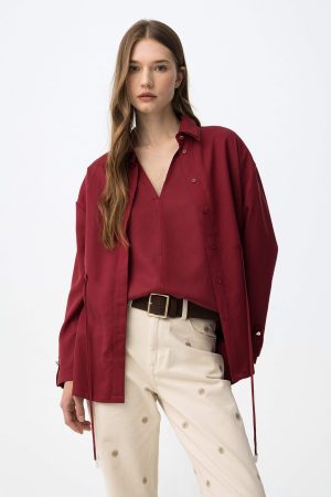Camisa bordô c/ atilhos