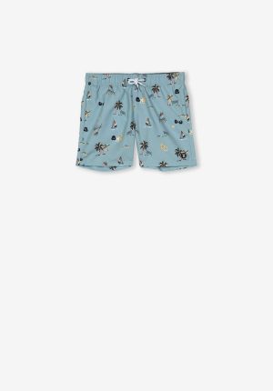 Calções de banho azuis c/ print praia