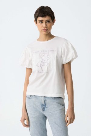 T-shirt branca c/ manga tufada