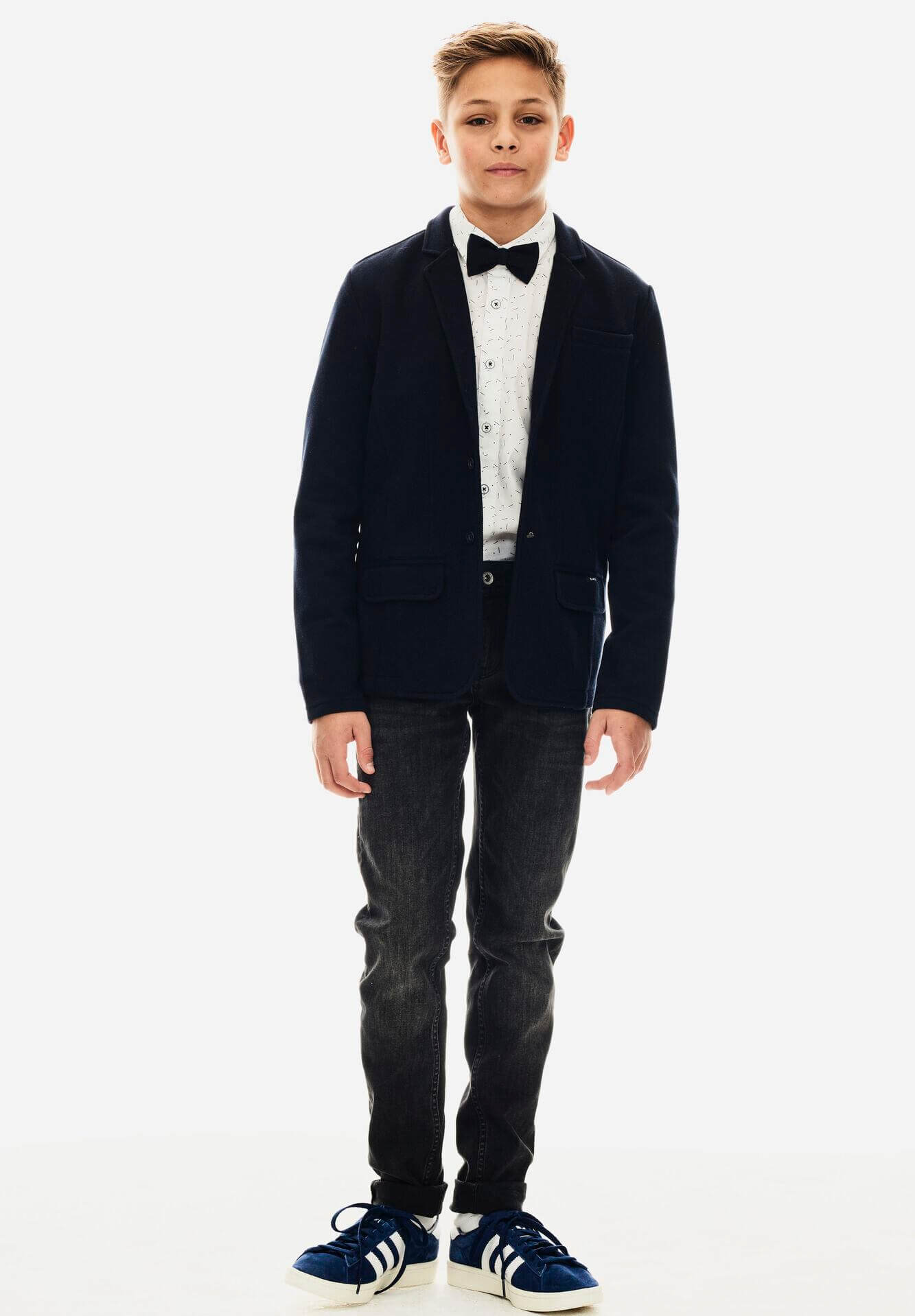 Combinando a história dos fundadores da Garcia Jeans, Maurizio e Isabella Gracia, as suas coleções produzem uma seleção forte de roupas de dia a dia que inspirou o amor do fundador de fazer com que as meninas parecessem mais bonitas no seu dia-a-dia. Assim é este blazer azul marino da Garcia Jeans. Tem bolsos na frente e racha na costa. Combina para parte de baixo com jeans mas dentro do mesmo estilo. O modelo está a vestir o 9-10 anos / 140 cm.