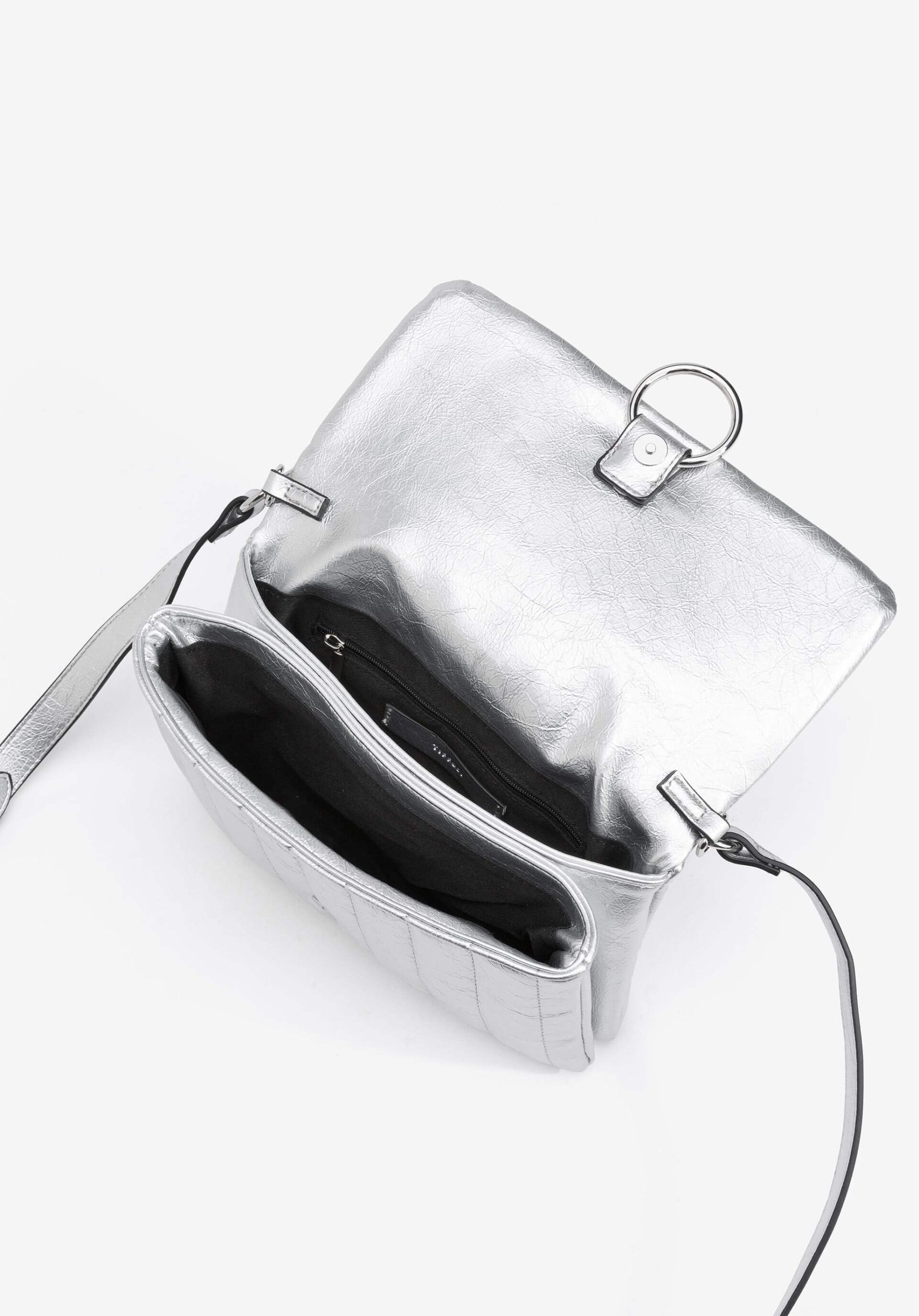 Conhecida por seu estilo urbano e design incomum, a Tiffosi incorpora detalhes inovadores. Combinados com silhuetas inspiradas em streetwear e uma estética jovial. Assim é esta bolsa prata da Tiffosi. Tem espaço no interior para guardar os seus pertences.