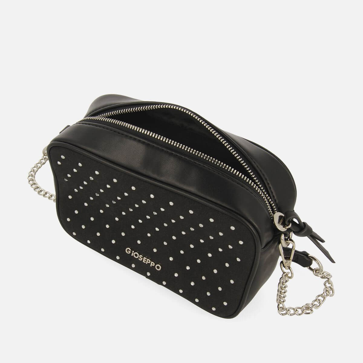 Conhecida por seu estilo urbano e design incomum, a Gioseppo incorpora detalhes inovadores. Combinados com inspirações em streetwear e uma estética jovial. Assim é esta bolsa preta tiracolo strass da Gioseppo. Tem alça de mão e de ombro. Combina na perfeição com jeans, mas dentro do mesmo estilo.