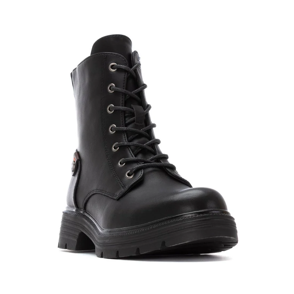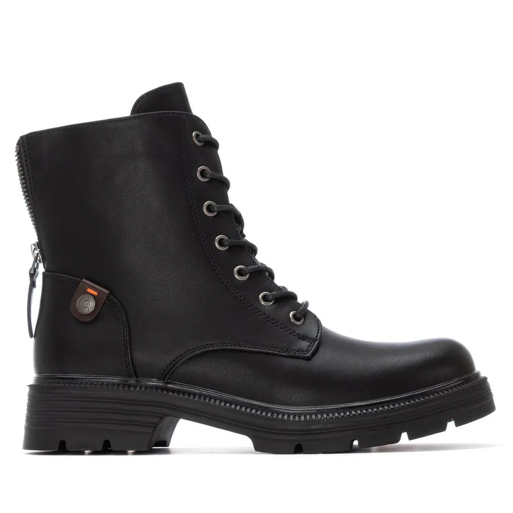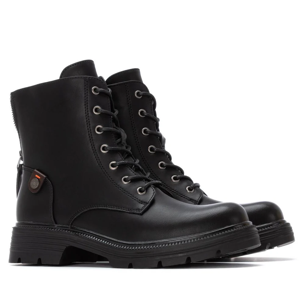 Conhecida por seu estilo urbano e design incomum, a Refresh incorpora detalhes inovadores. Combinados com silhuetas inspiradas em streetwear e uma estética jovial. Assim são estas botas militar pretas da Refresh. Apresenta uma sola de borracha e atacadores. Para parte de cima combina na perfeição com camisolas, mas dentro do mesmo estilo. O modelo está no tamanho 37.
