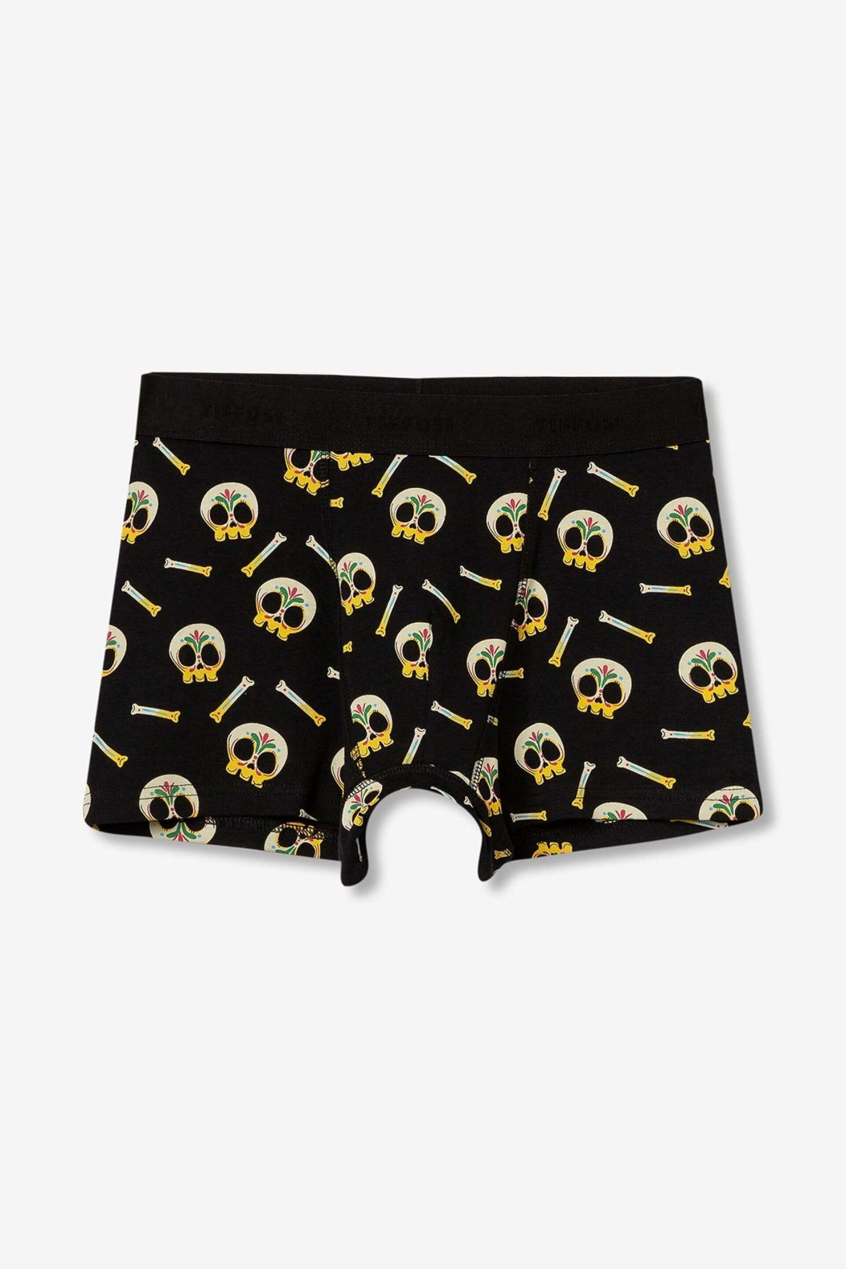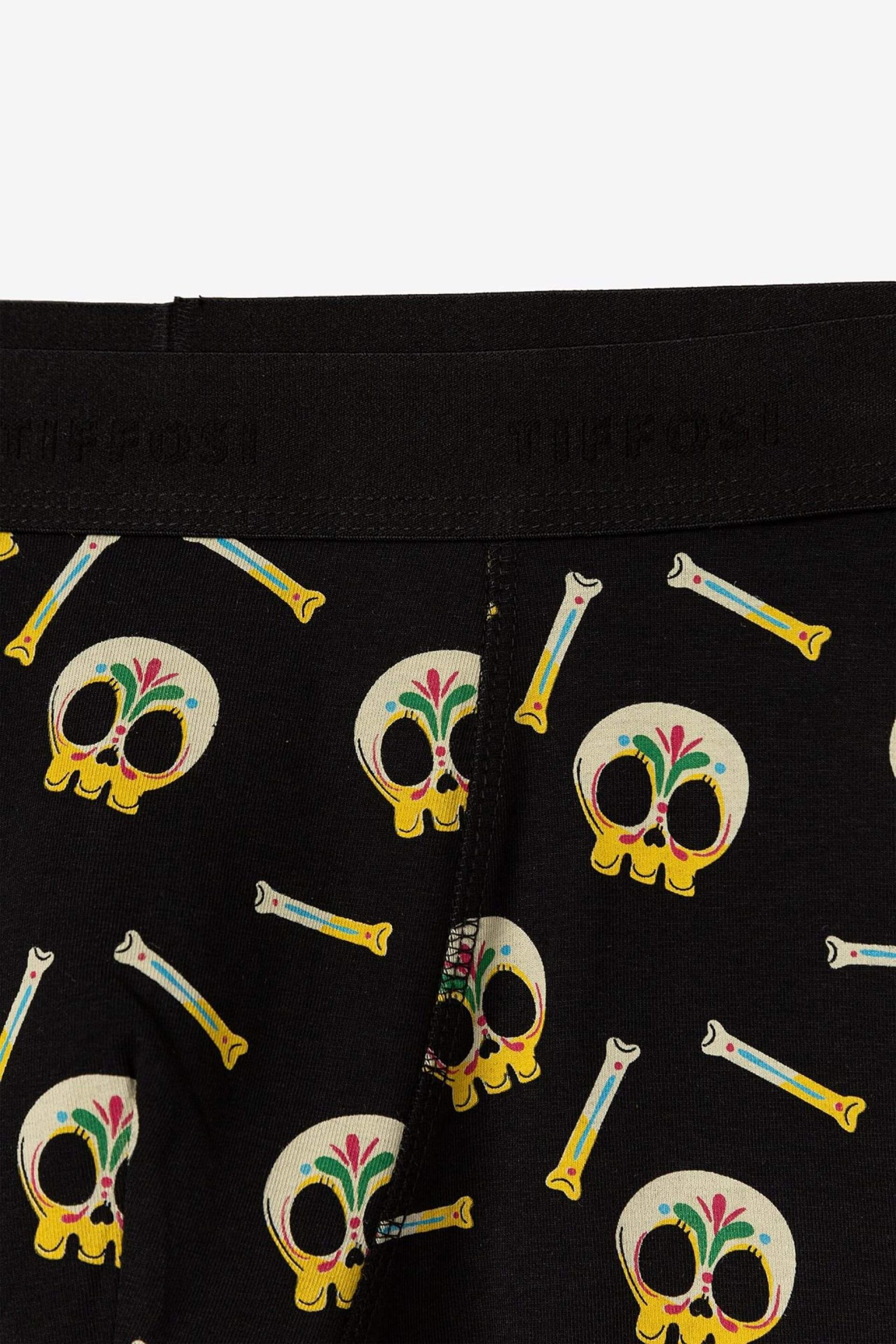 Pense em silhuetas dos anos 80, painéis pesados, denim super skinny e estampas de bandana. Pois bem essa era voltou aos dias de hoje. Assim é este boxer preto c/ caveiras da Tiffosi. Apresenta elástico na cintura. O modelo está no tamanho M.