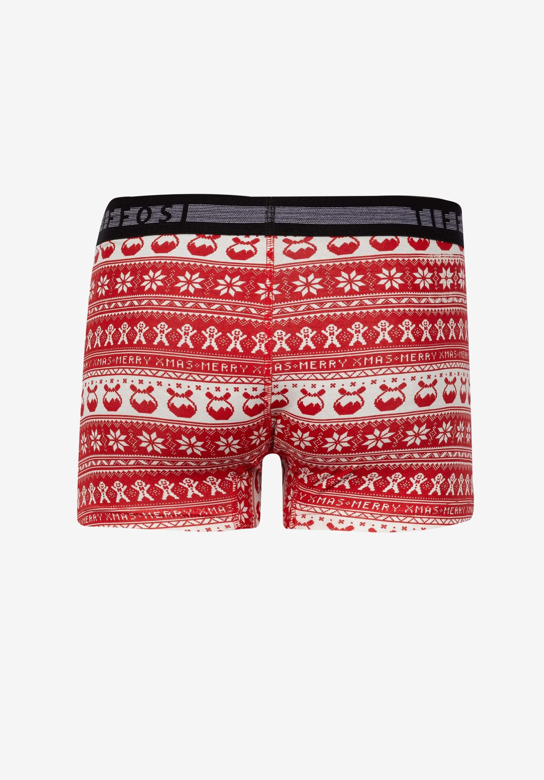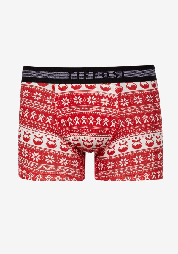 Pense em silhuetas dos anos 80, painéis pesados, denim super skinny e estampas de bandana. Pois bem essa era voltou aos dias de hoje. Assim são estes boxers estampados de natal de cintura elástica da Tiffosi. Apresenta elástico na cintura. O modelo está no tamanho M.