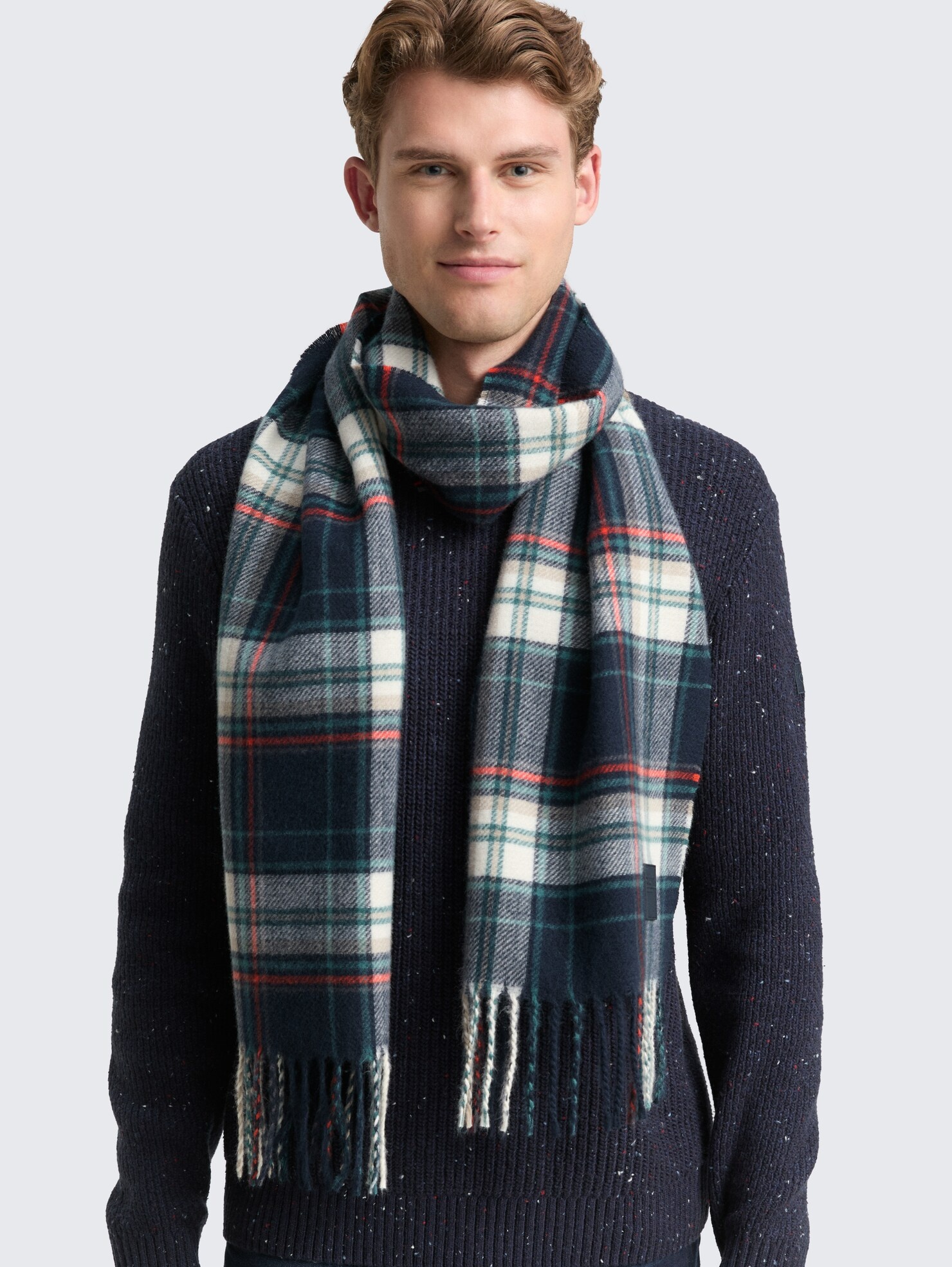 Conhecida por seu estilo urbano e design incomum, a Tom Tailor incorpora detalhes inovadores. Combinados com silhuetas inspiradas em streetwear e uma estética jovial. Assim é este cachecol xadrez azul da Tom Tailor. Combina na perfeição com casaco, mas dentro do mesmo estilo.