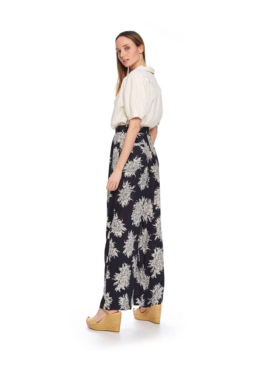 Projetado pela Md`m para mulheres decididas e atraentes, inspira-se nesta coleção em viagens ao redor do mundo. Pense em roupas brilhantes e bonitas, com prints únicos. Bordados inconfundíveis, que a levarão bela até ao final da jornada da trabalho. Assim é esta calça larga preta c/ floral da Md`m. Apresenta um corte largo com dois bolsos metidos nas laterais e dois bolsos fingidos na parte de trás, com cinta alta, fecho de correr e botão no cós, mas sem apertar demasiado. Pode ser usado com casaco ou blusão por cima, além disso, pode combinar com botas. A modelo está a vestir o tamanho 36.