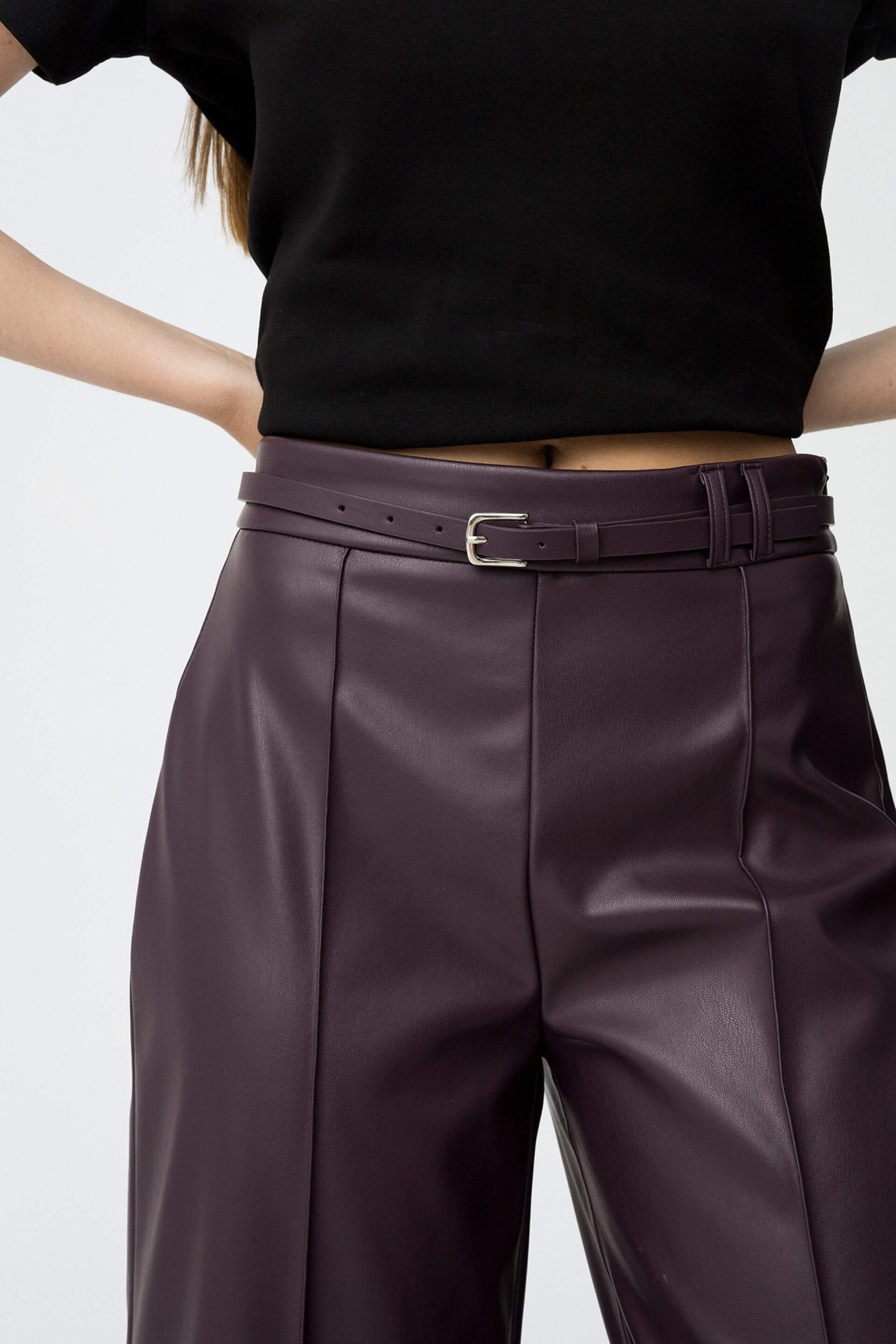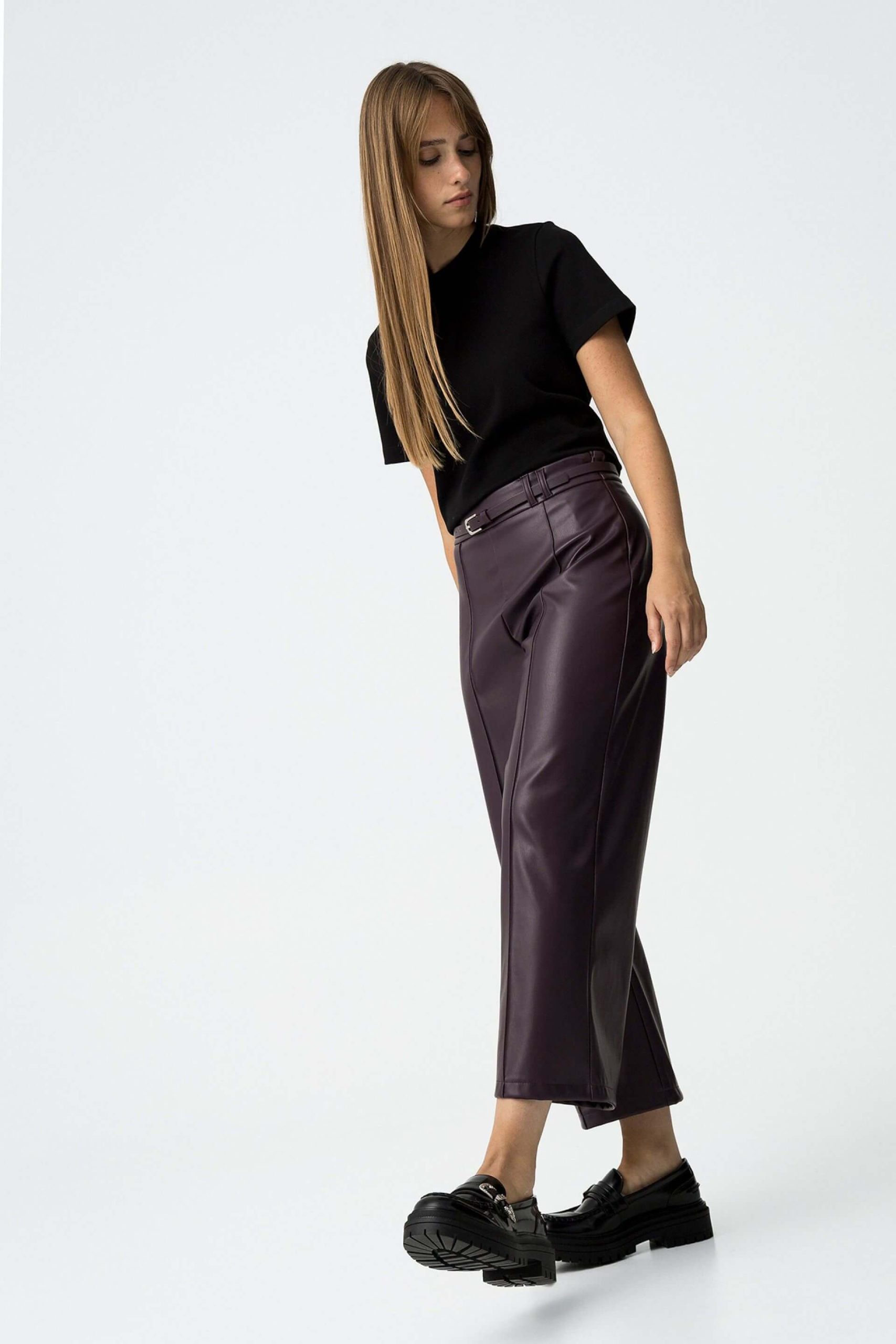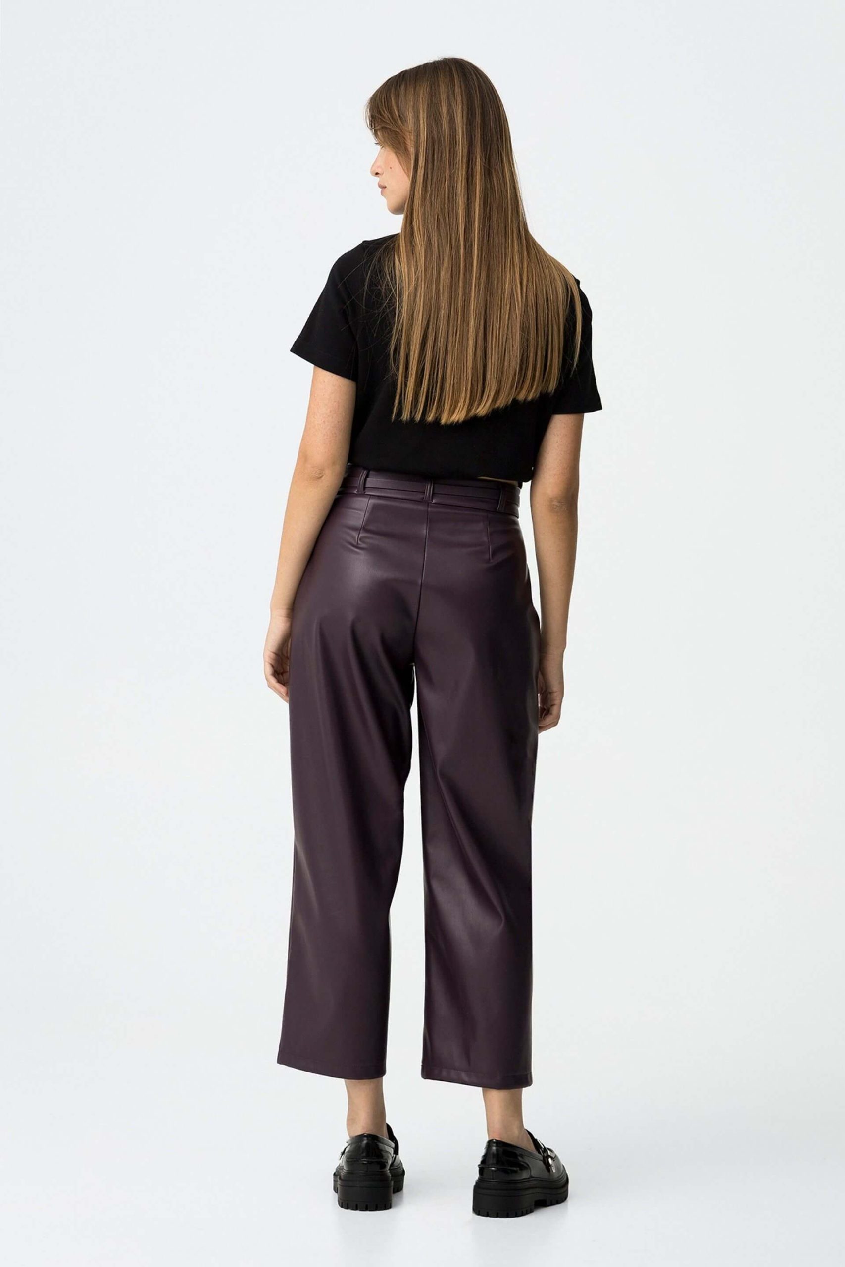 Pense em silhuetas dos anos 80, painéis pesados, denim super skinny e estampas de bandana. Pois bem essa era voltou aos dias de hoje. Conhecida por seu estilo urbano e design incomum, a Tiffosi incorpora detalhes nativos portugueses. Assim são estas calças bordô de napa da Tiffosi. Com perneiras largas e curtas. Com cinto e fecho invisível na lateral. Pode combinar com malhas ou camisas para parte de cima. A modelo está a vestir o tamanho 34.