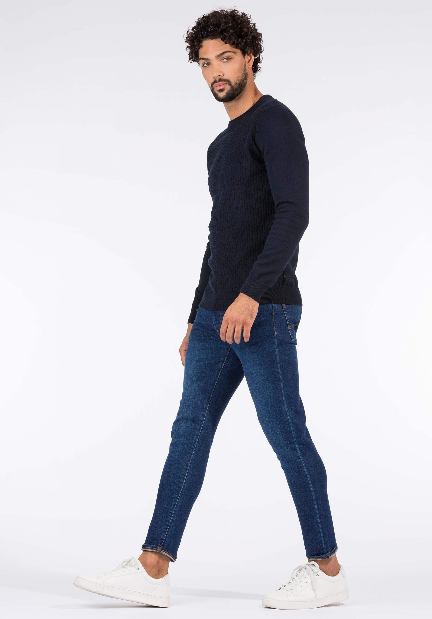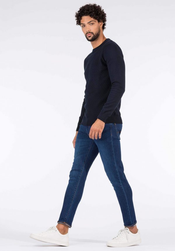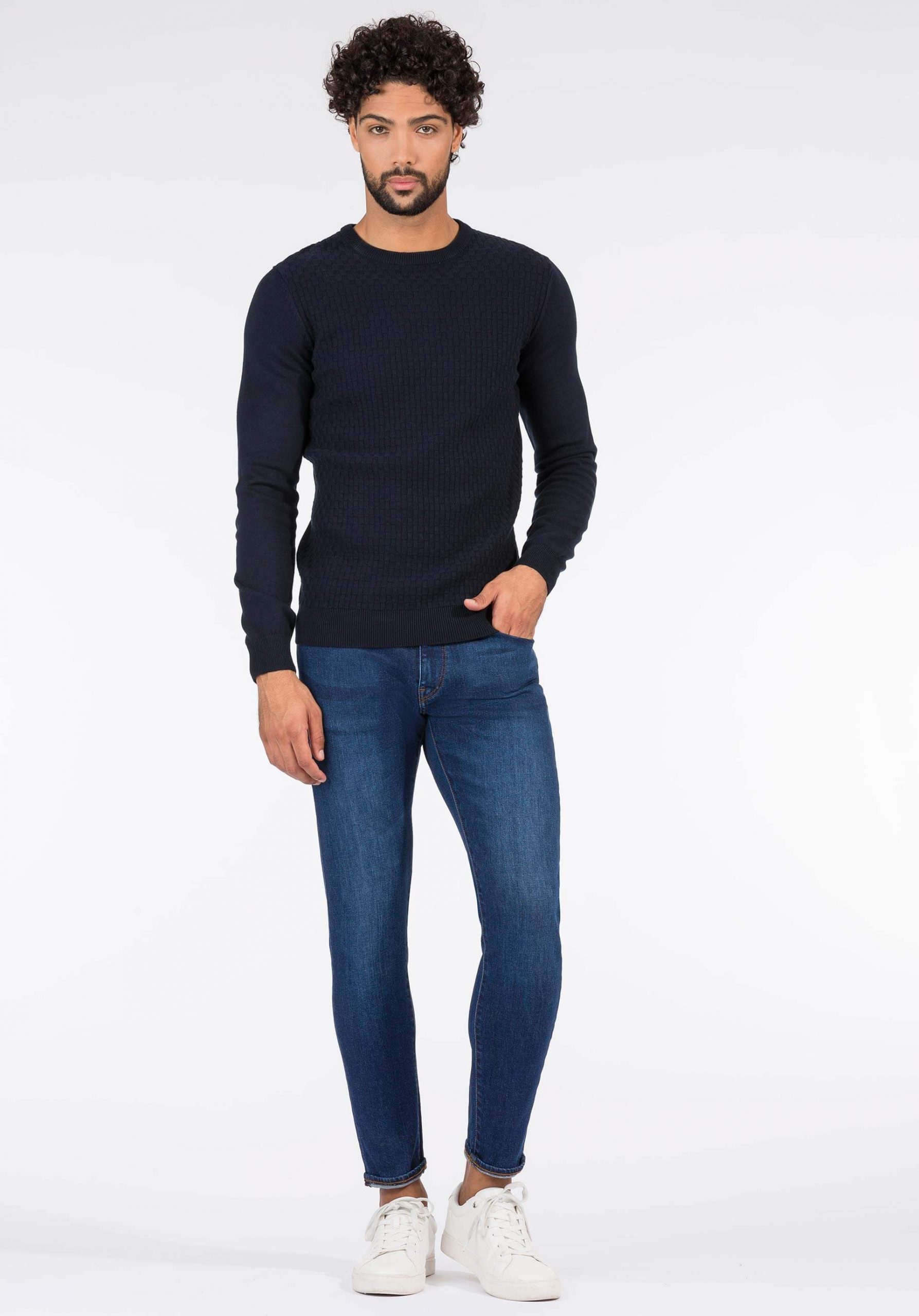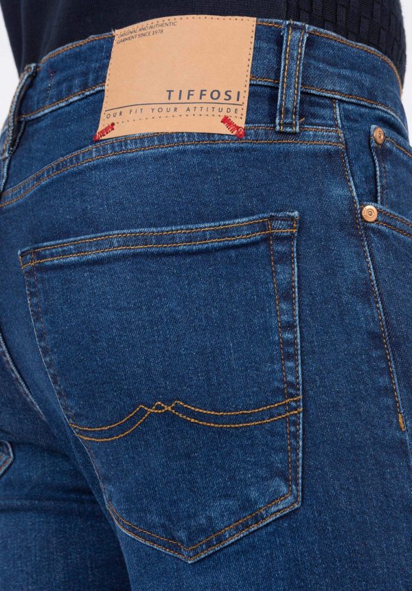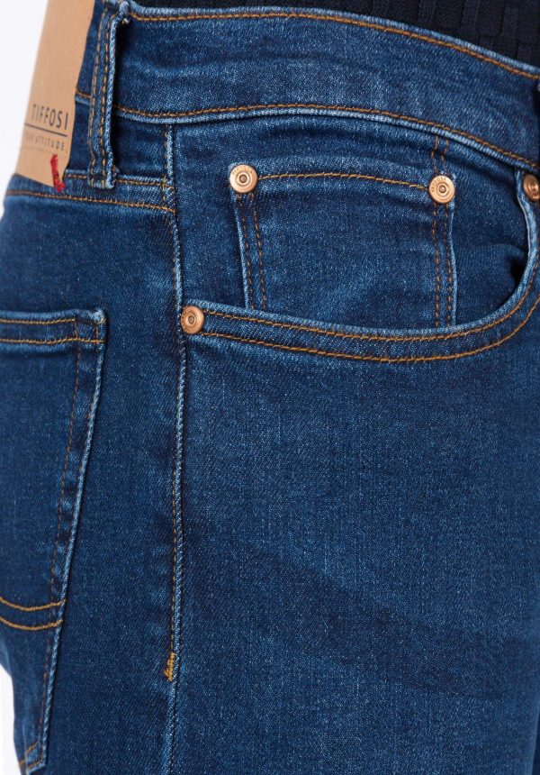 Pense em silhuetas dos anos 80, painéis pesados, denim super skinny e estampas de bandana. Pois bem essa era voltou aos dias de hoje. Conhecida por seu estilo urbano e design incomum, a Tiffosi incorpora detalhes nativos portugueses. Assim são calças de ganga dylan da Tiffosi. Apresentam presilhas para cinto, fecho de metal na berguilha, um design de cinco bolsos. Com um corte slim fit em ganga azul escura com um emblema da marca na parte das costas. Para parte de cima combina na perfeição com camisa ou camisola mas a dar com o tom. O manequim está a vestir o tamanho 38.