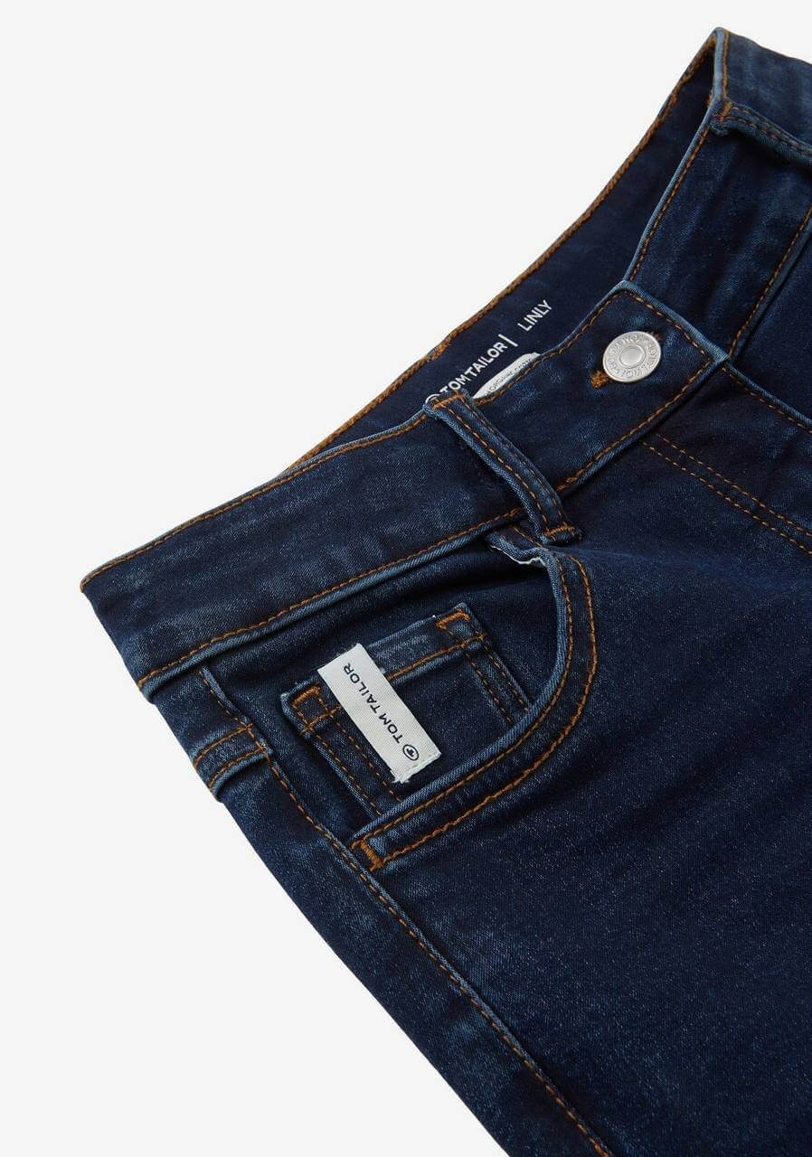 Pense em silhuetas dos anos 80, painéis pesados, denim super skinny e estampas de bandana. Pois bem essa era voltou aos dias de hoje. Conhecida por seu estilo urbano e design incomum, a Tom Tailor incorpora detalhes nativos holandeses. Assim são estas calças de ganga lissie da Tom Tailor. Tem corte co 5 bolsos, botão no cós e fecho na carcela. Para parte de cima combina na perfeição com casaco mas a dar com o tom. A imagem está no tamanho 9-10 anos /140 cm.