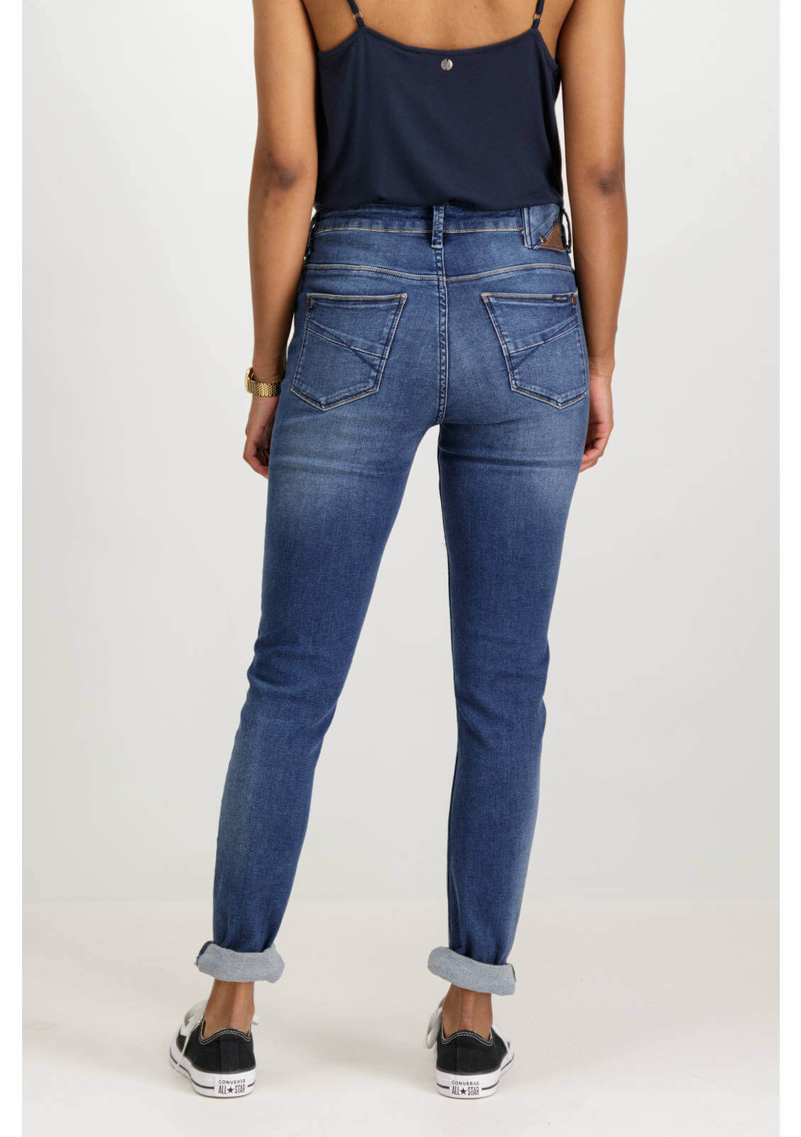 Combinando a história dos fundadores da Garcia Jeans, Maurizio e Isabella Gracia, a mais recente coleção O/I 18/19 da marca produziu uma seleção forte de roupas de dia a dia que inspirou o amor do fundador de fazer com que as mulheres parecessem mais bonitas no seu quotidiano. Assim são estas calças de ganga super slim da Garcia Jeans. Produzida em tela de ganga em algodão e elastano azul escuro. Com um design de cinco bolsos, três na frente e dois na parte traseira. Com botão e fecho de correr na frente. Combina para cima com camisas ou túnicas mas dentro do mesmo estilo. A modelo está a vestir o 36.