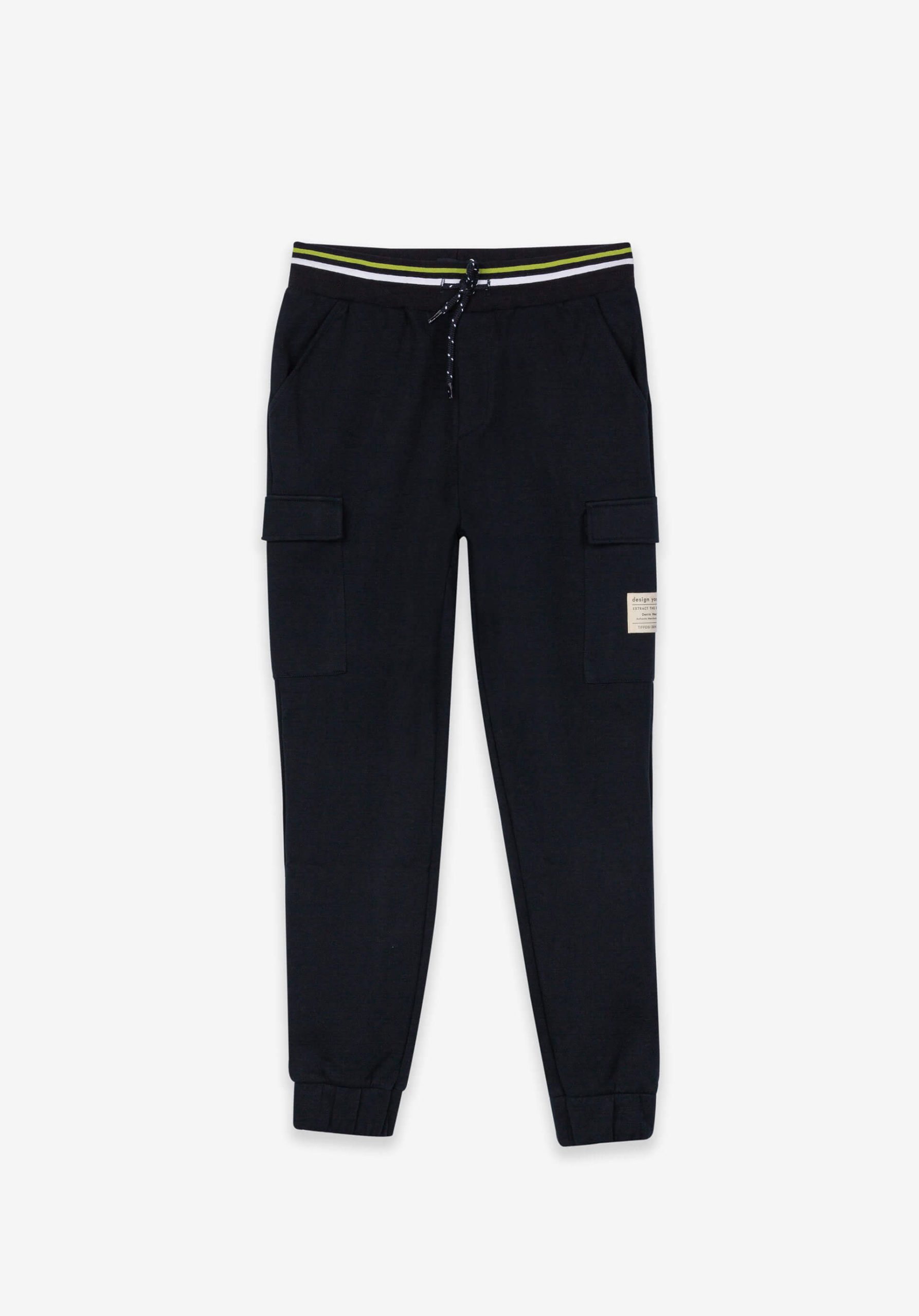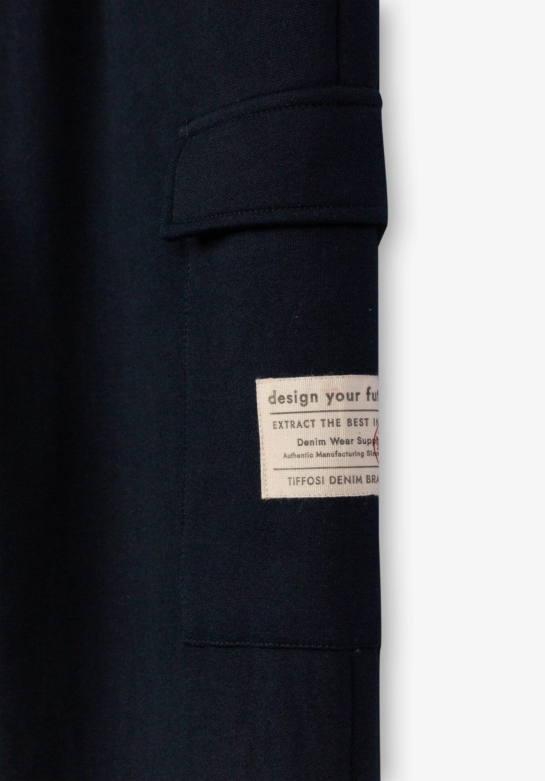 Pense em silhuetas dos anos 80, painéis pesados, denim super skinny e estampas de bandana. Pois bem essa era voltou aos dias de hoje. Assim são estas calças de treino azuis c/ bolso lateral da Tiffosi. Apresenta bolsos metidos e de chapa e elástico no cós. Para parte de cima combina na perfeição com t-shirt mas a dar com o tom. O modelo está no tamanho 140 9/10.