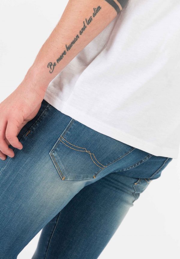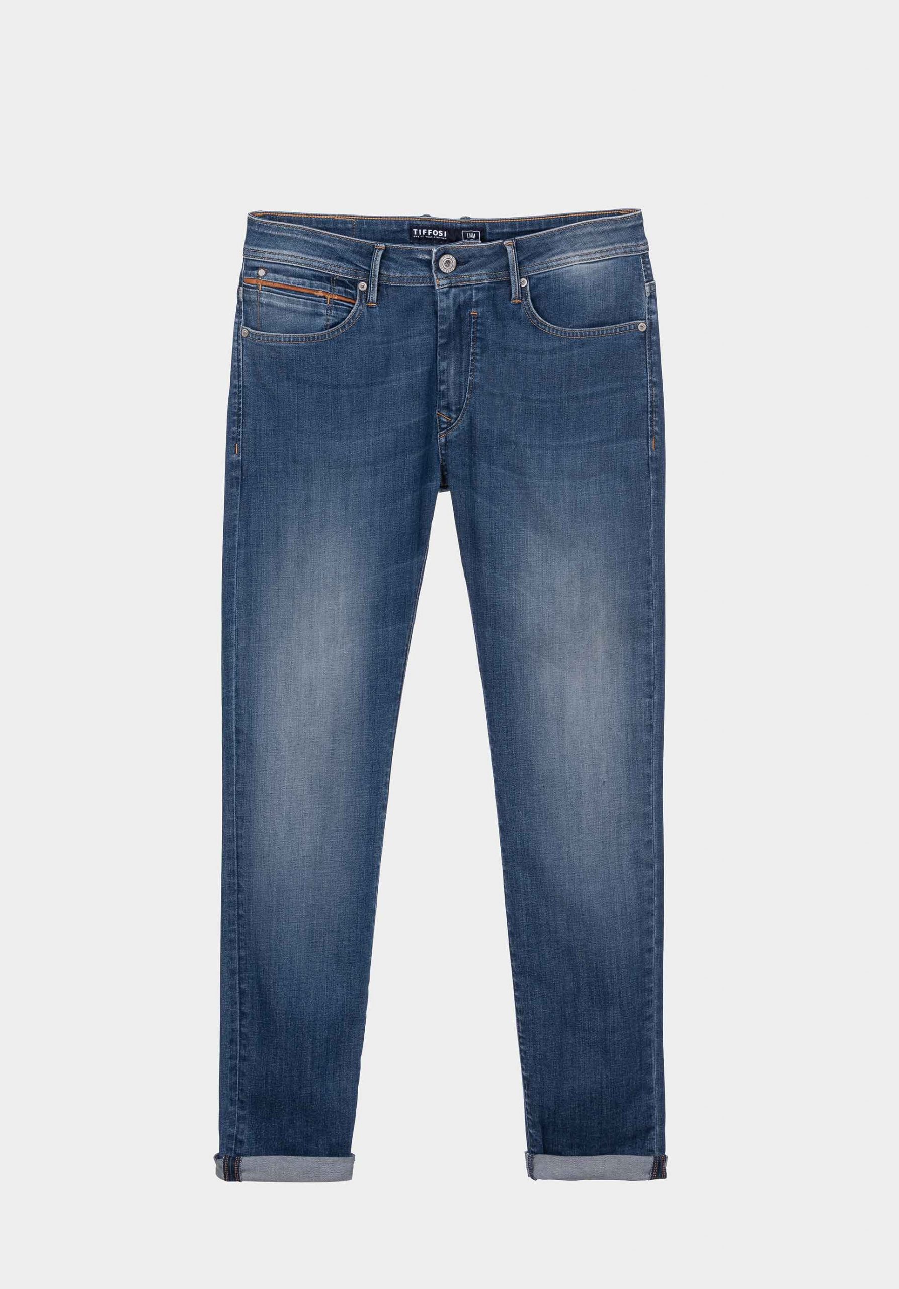 Conhecida por seu estilo urbano e design incomum, a Tiffosi incorpora detalhes inovadores. Combinados com silhuetas inspiradas em streetwear e uma estética jovial. Assim são estas calças liam de ganga da Tiffosi. Tem corte com 5 bolsos. Para parte de cima combina na perfeição com camisa, mas dentro do mesmo estilo. O modelo está a vestir o 38.