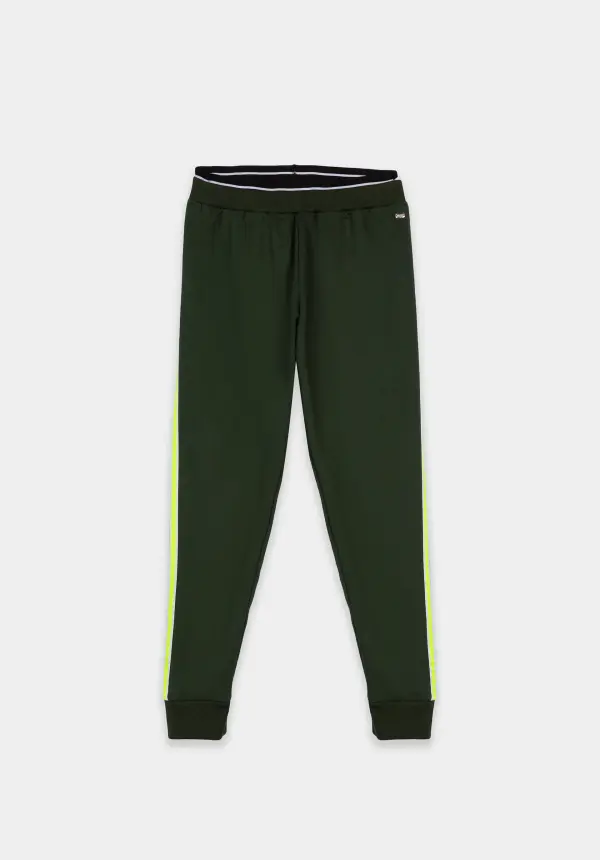 Pense em silhuetas dos anos 80, painéis pesados, denim super skinny e estampas de bandana. Pois bem essa era voltou aos dias de hoje. Conhecida por seu estilo urbano e design incomum, a Tiffosi incorpora detalhes nativos portugueses. Assim são estas calças verde c/ fita florescente da Tiffosi. Tem elástico no cós e chapa da marca na frente. Acabamento de  com punho na bainha. Para parte de cima combina na perfeição com camisa ou camisola mas a dar com o tom. A imagem está no tamanho 9-10 anos /140 cm.