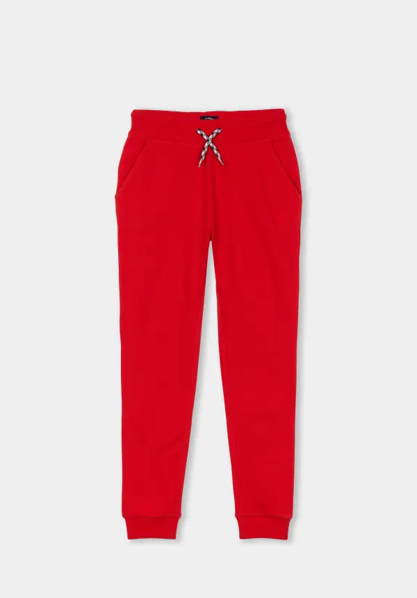 Pense em silhuetas dos anos 80, painéis pesados, denim super skinny e estampas de bandana. Pois bem essa era voltou aos dias de hoje. Conhecida por seu estilo urbano e design incomum, a Tiffosi incorpora detalhes nativos portugueses. Assim são estas calças vermelhas de fato treino da Tiffosi. Com cós elástico e cordão ajustável. Acabamento de punho em baixo. Bolsos laterais. Pormenor estampado. Para parte de cima combina na perfeição com camisa ou camisola mas a dar com o tom. A imagem está no tamanho 9-10 anos /140 cm.