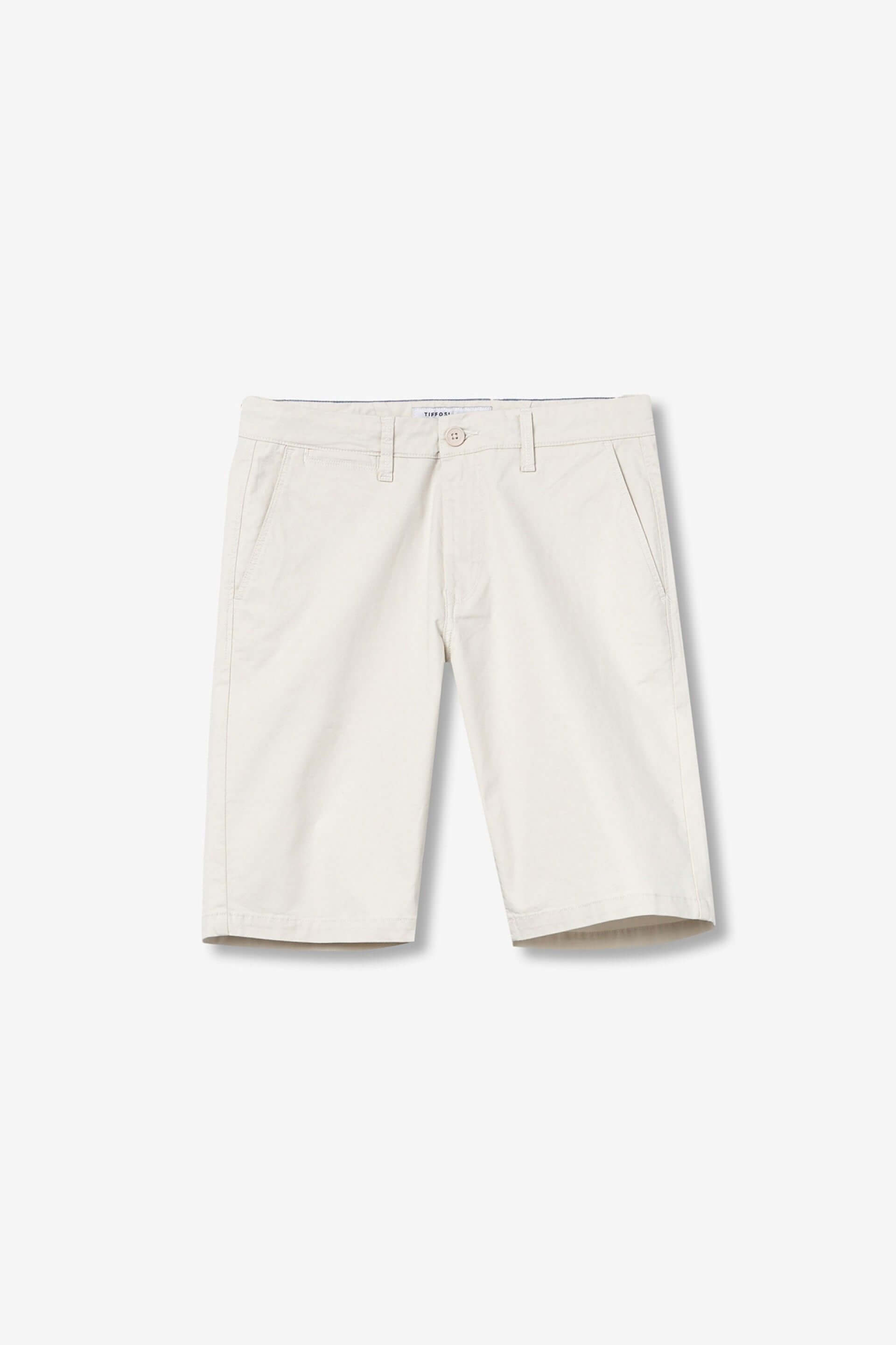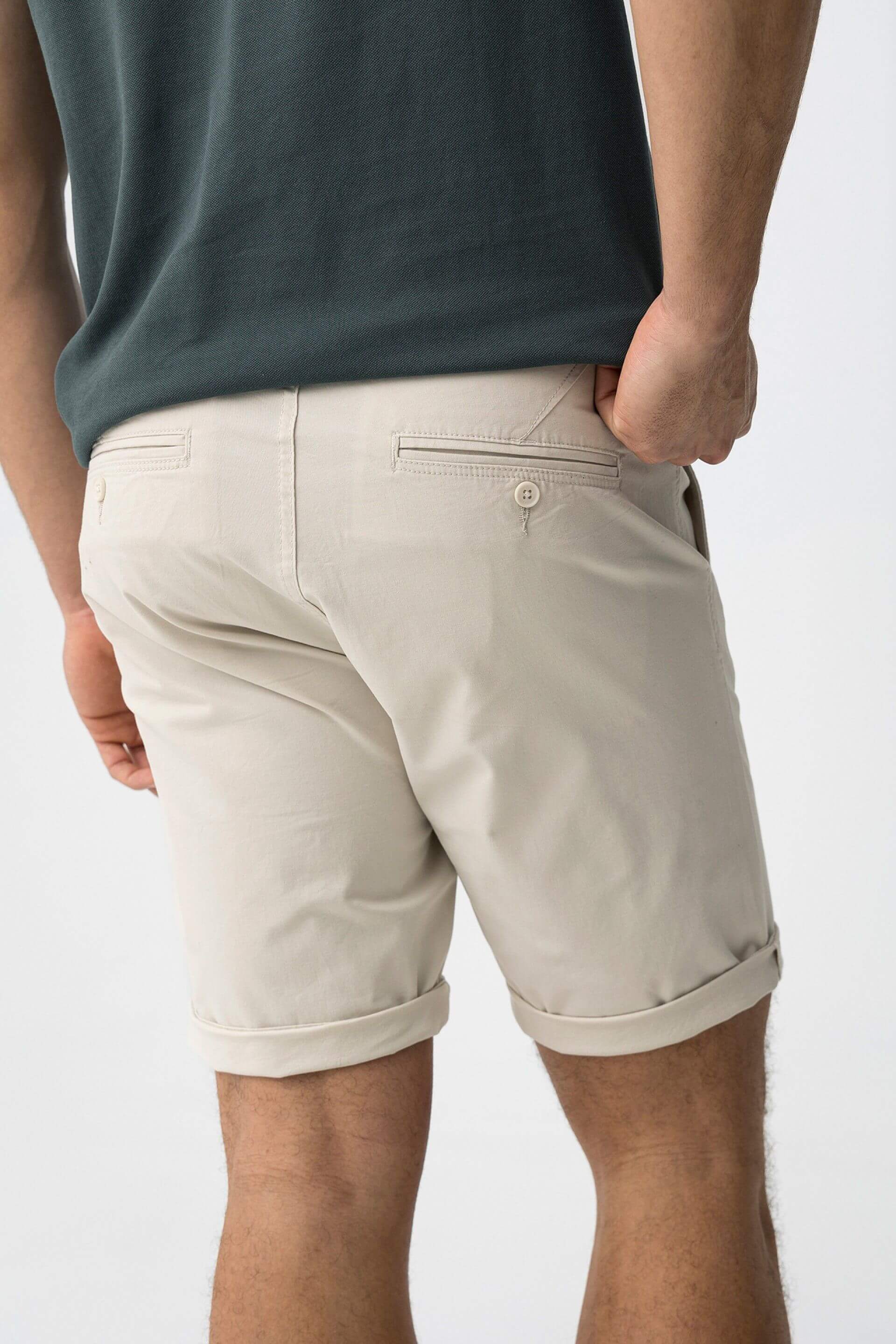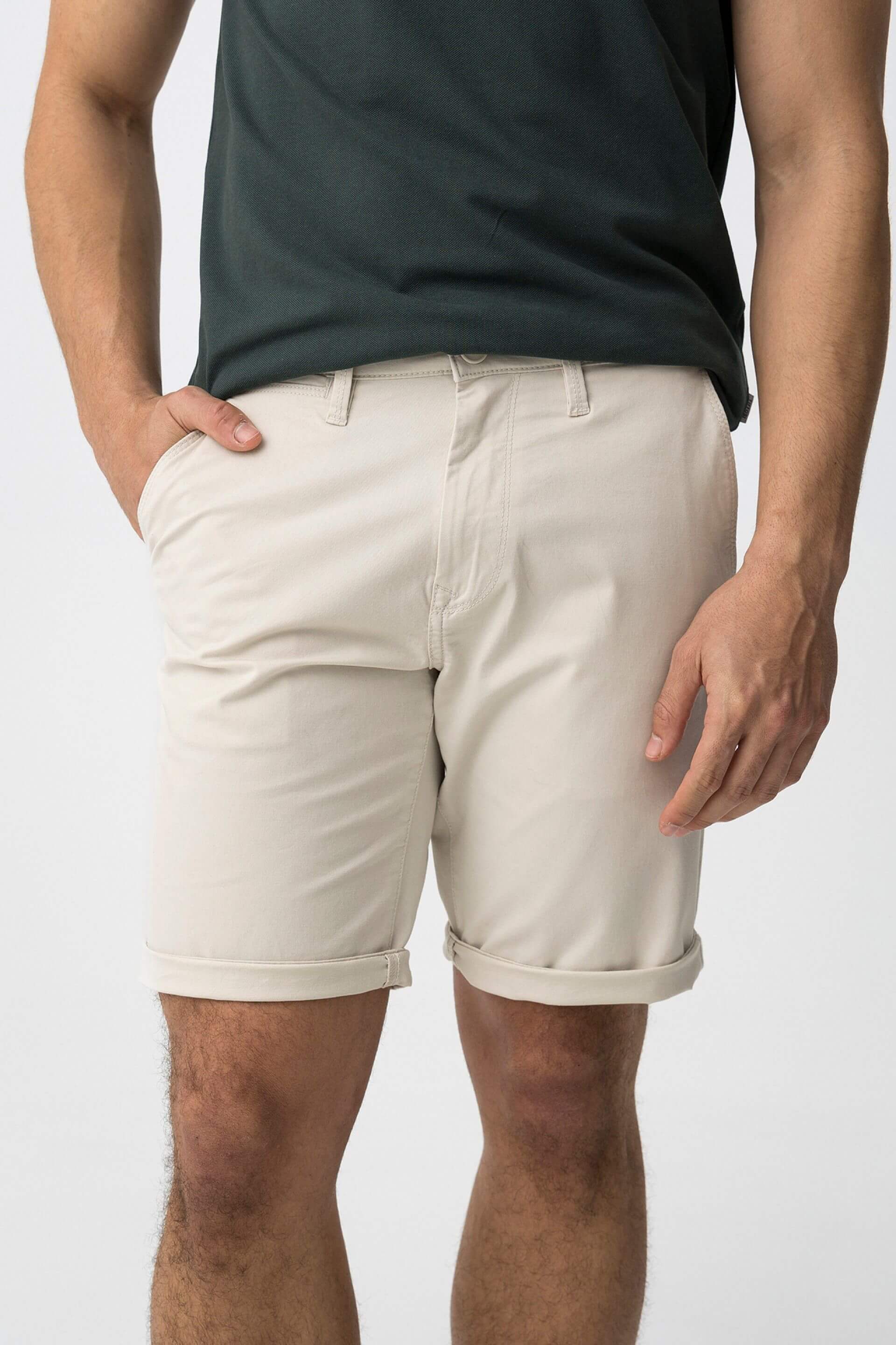 Pense em silhuetas dos anos 80, painéis pesados, denim super skinny e estampas de bandana. Pois bem essa era voltou aos dias de hoje. Assim são estes calções beges chino da Tiffosi  Apresentam um design de quatro bolsos, fecho e botão. Para parte de cima combina na perfeição com camisa ou camisola mas a dar com o tom. O manequim está a vestir o tamanho 38.