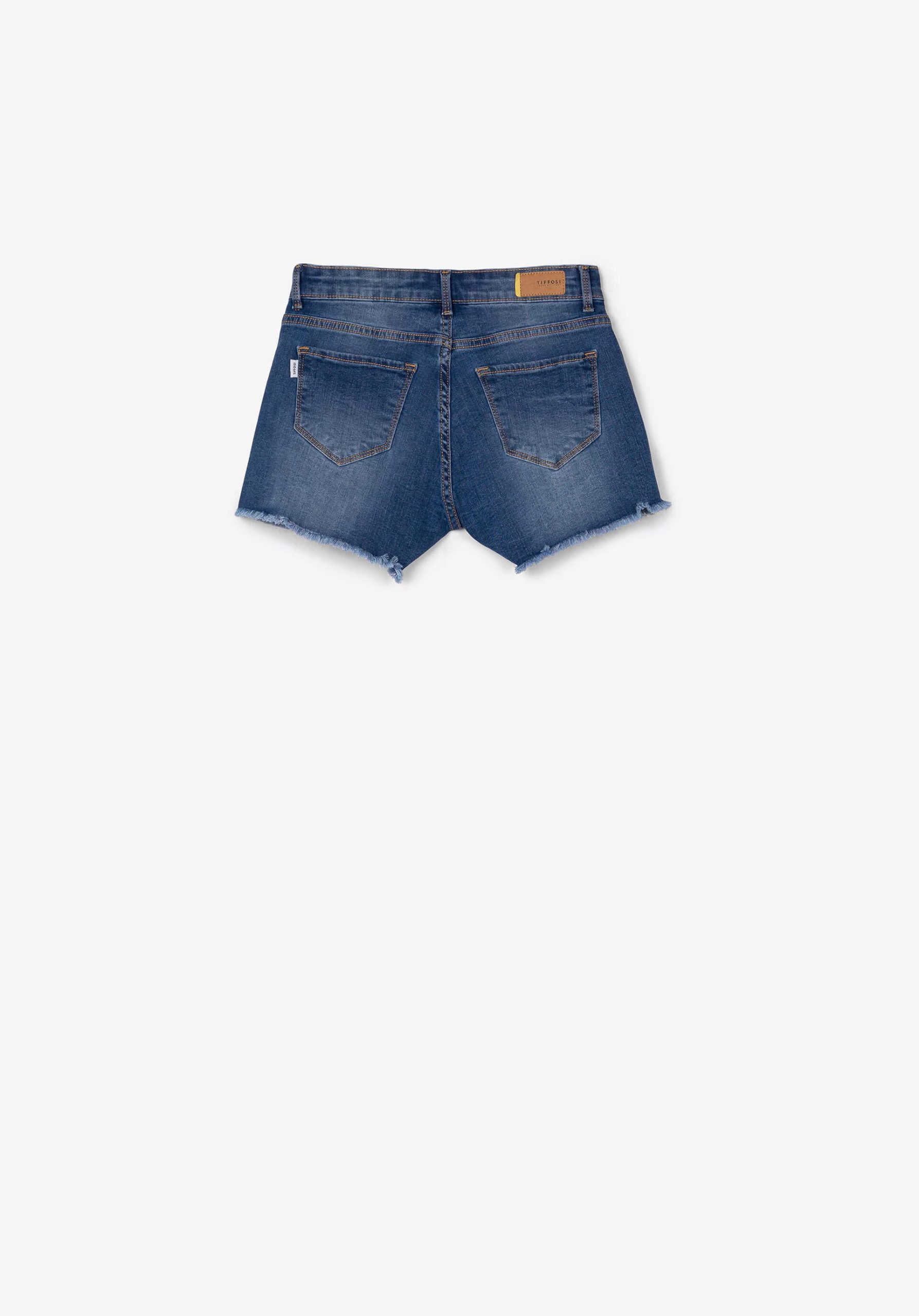 Pense em silhuetas dos anos 80, painéis pesados, denim super skinny e estampas de bandana. Pois bem essa era voltou aos dias de hoje. Conhecida por seu estilo urbano e design incomum, a Tiffosi incorpora detalhes nativos portugueses. Assim são estes calções ganga média c/ desfiados da Tiffosi. Tem 5 bolsos, fecho e botão no cós. Para parte de cima combina na perfeição com t-shirt mas a dar com o tom. A imagem está no tamanho 9-10 anos /140 cm.