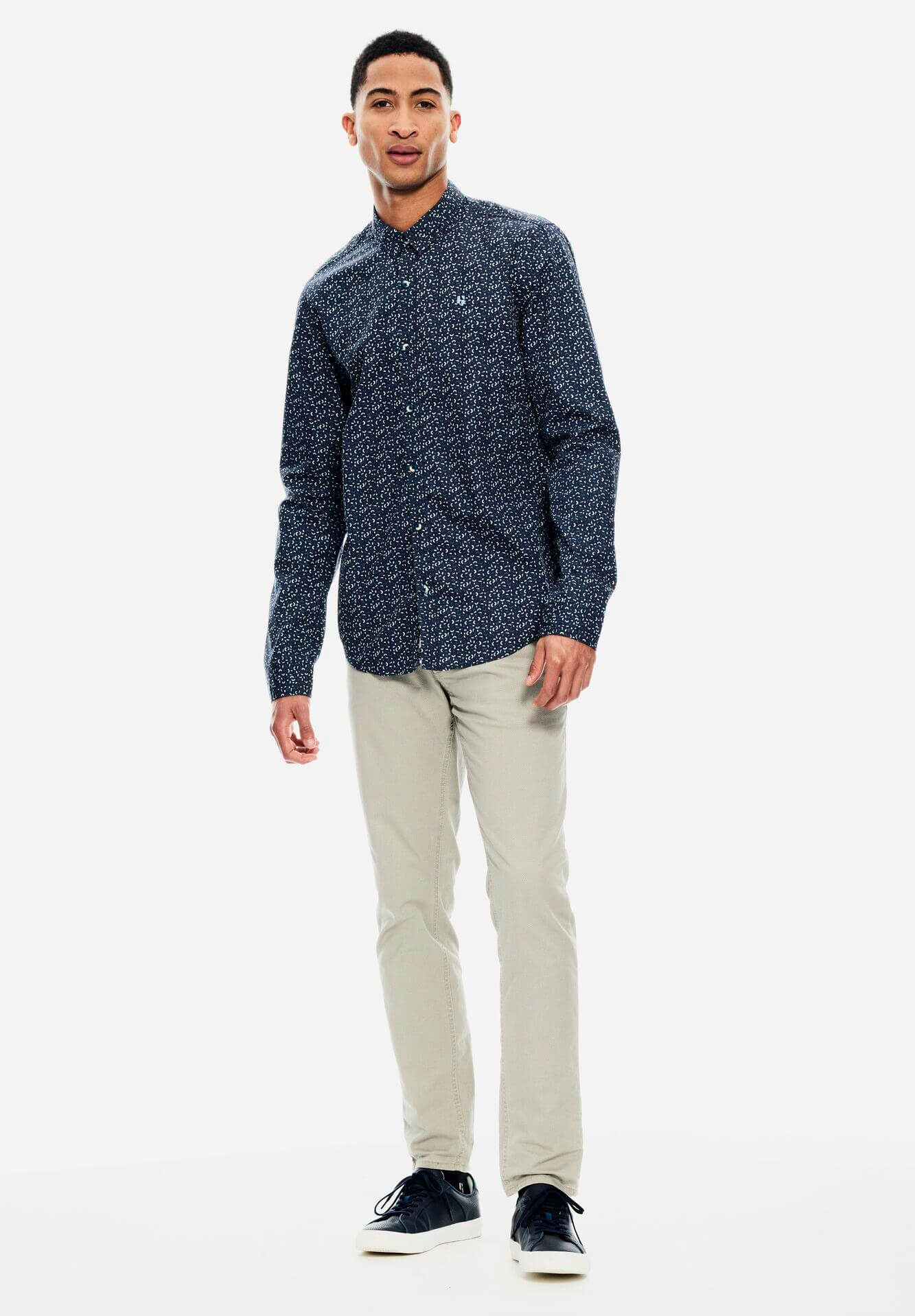 A Garcia Jeans foi lançada em 1977, pelas mãos de Maurizio e Isabella Gracia, oferece produtos de qualidade superior, que contam histórias através das suas coleções. Assim é esta camisa azul c/ estampado da Garcia. Mangas compridas com punhos de botão e gola de bico. Combina com calça de sarja para baixo e por cima um casaco ou blusão. O manequim está a vestir o tamanho S.