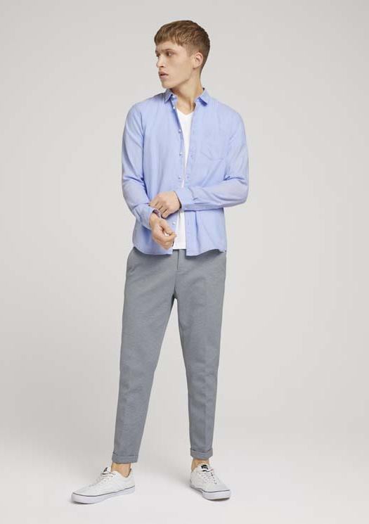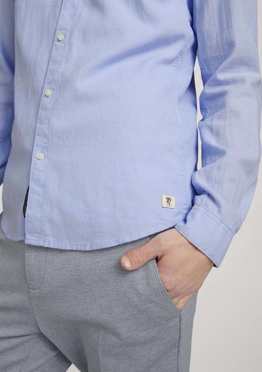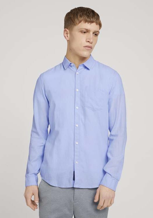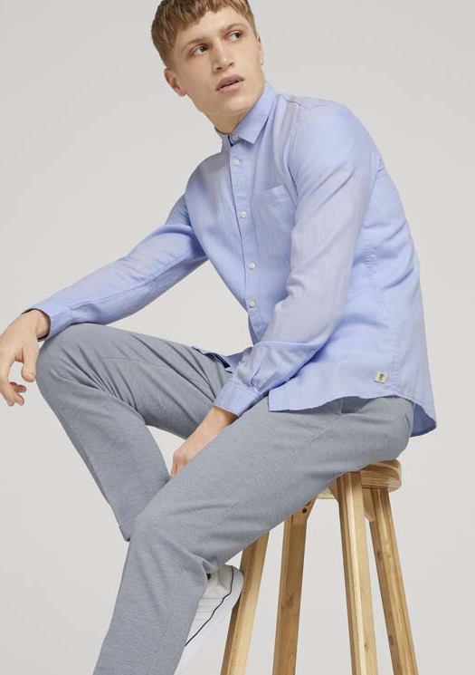 Conhecida por seu estilo urbano e design incomum, a Tom Tailor incorpora detalhes inovadores. Combinados com silhuetas inspiradas em streetwear e uma estética jovial. Assim é esta camisa azul claro c/ bolso da Tom Tailor. Apresenta mangas compridas com punho de botão, gola em bico, carcela com botões brancos. A parte de trás é lisa com cabeção. Para parte de baixo combina na perfeição com jeans, mas dentro do mesmo estilo. O modelo está a vestir o tamanho S.