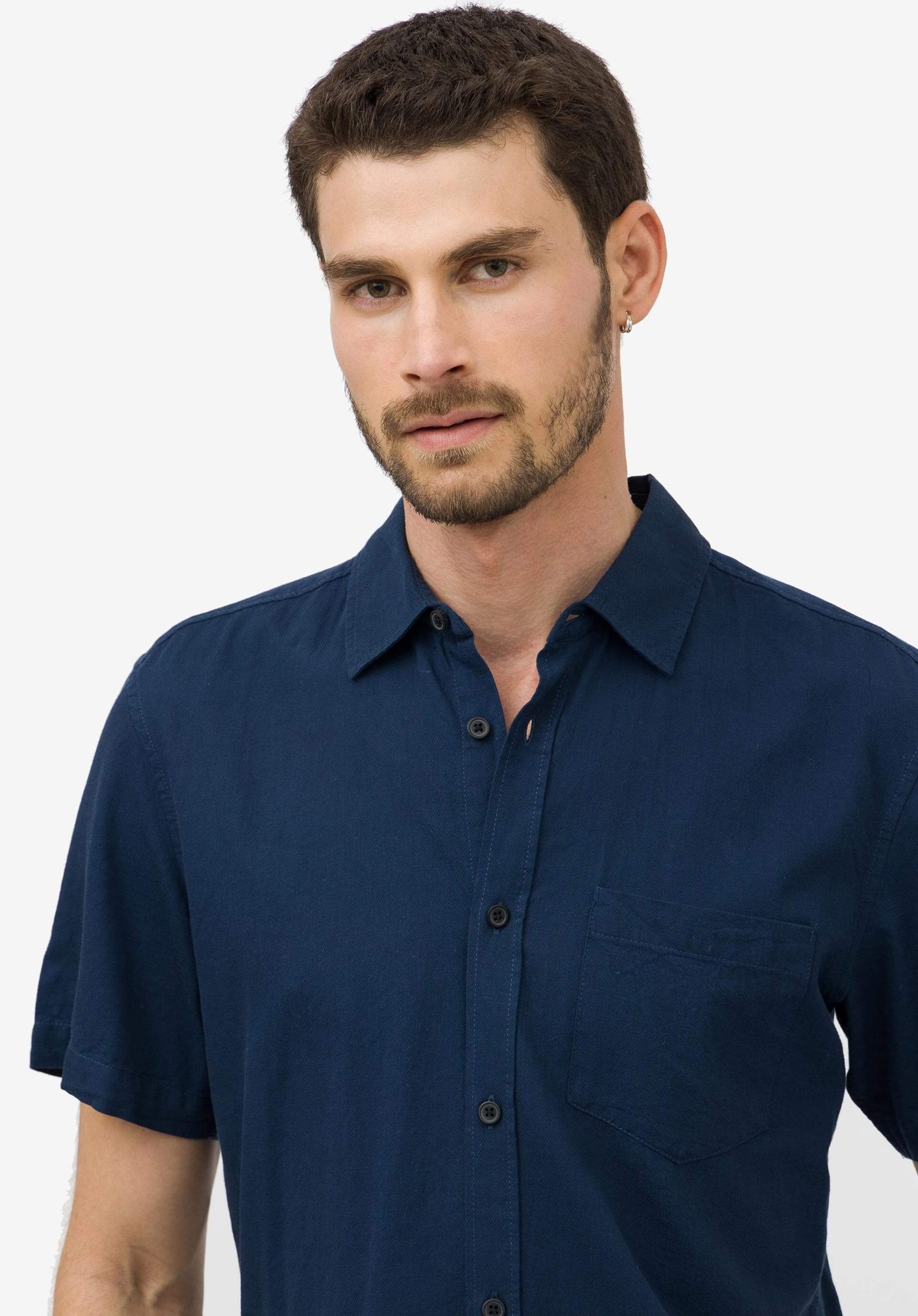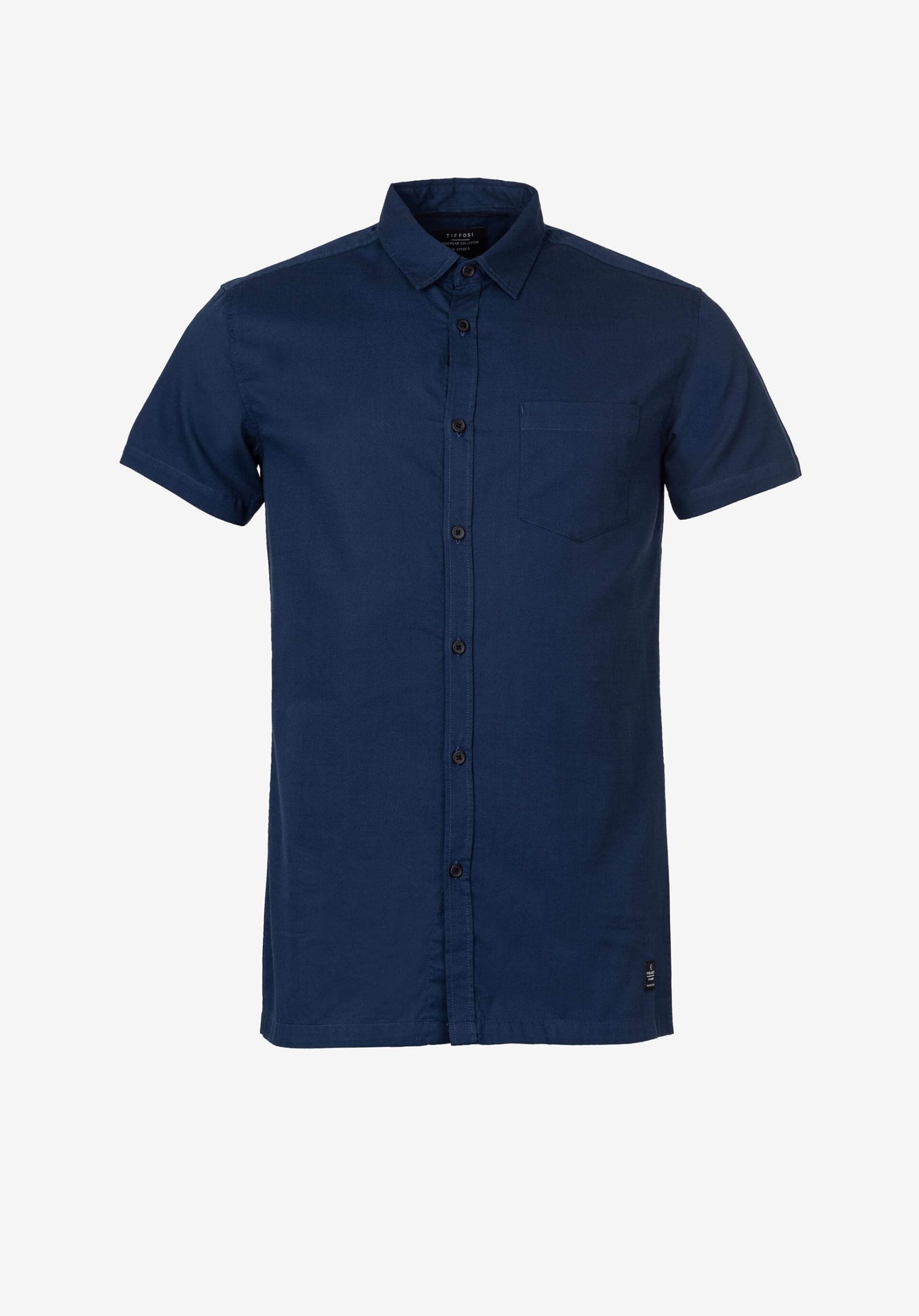 Conhecida por seu estilo urbano e design incomum, a Tiffosi incorpora detalhes inovadores. Combinados com silhuetas inspiradas em streetwear e uma estética jovial. Assim é esta camisa azul marino manga curta da Tiffosi. Tem manga curta, gola, carcela com botões e bolso. Para parte de baixo combina na perfeição com jeans, mas dentro do mesmo estilo. O modelo está a vestir o M.