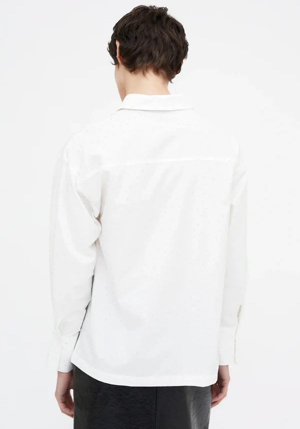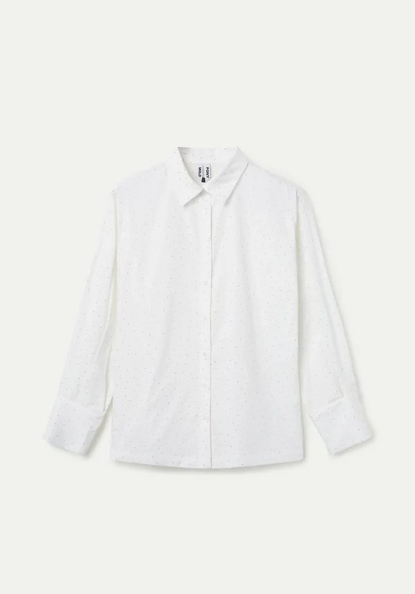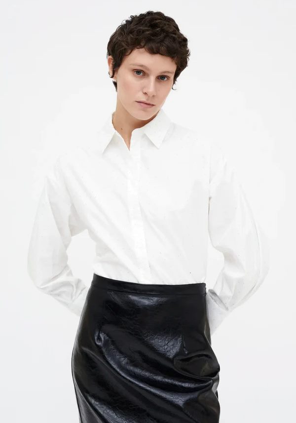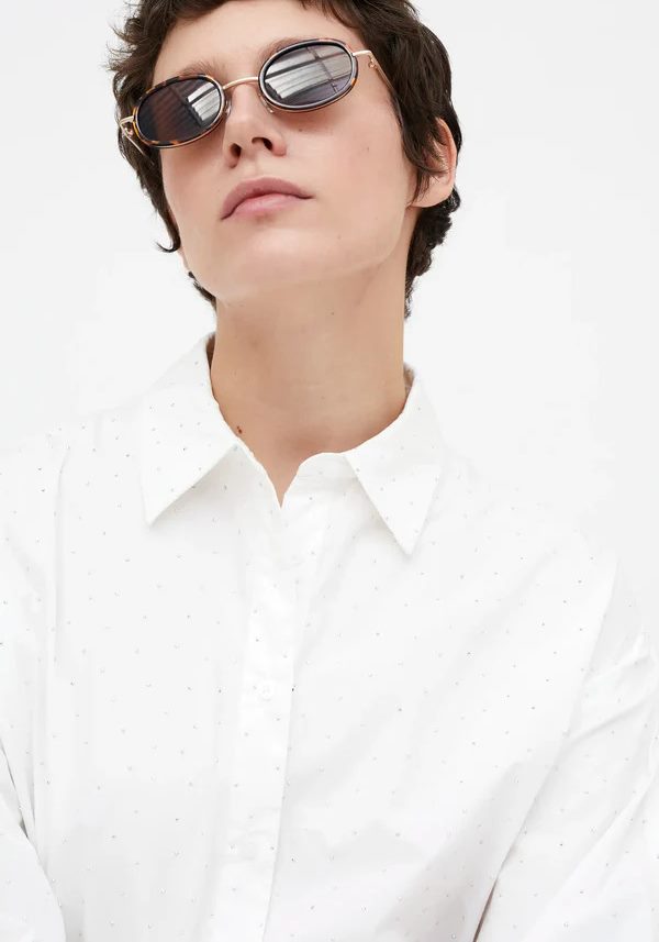 Pense em silhuetas que exalam elegância atemporal, transbordam de funcionalidade, conforto e elegância sutil. Pois bem essa era voltou aos dias de hoje. Assim é esta camisa branca c/ brilhantes da Wild Pony. Apresenta gola de bico, botões e manga comprida com punho. Para parte de baixo combina na perfeição com calça mas a dar com o tom. A manequim está a vestir o tamanho S.