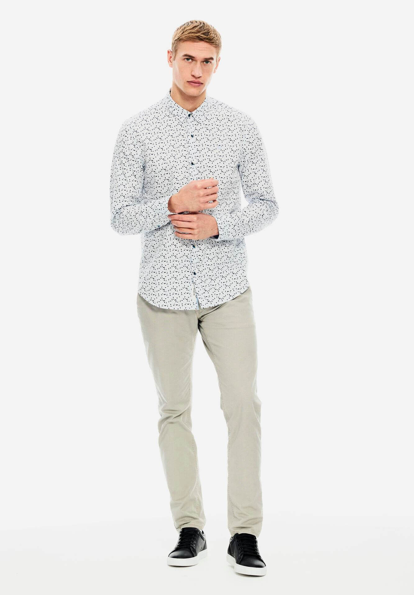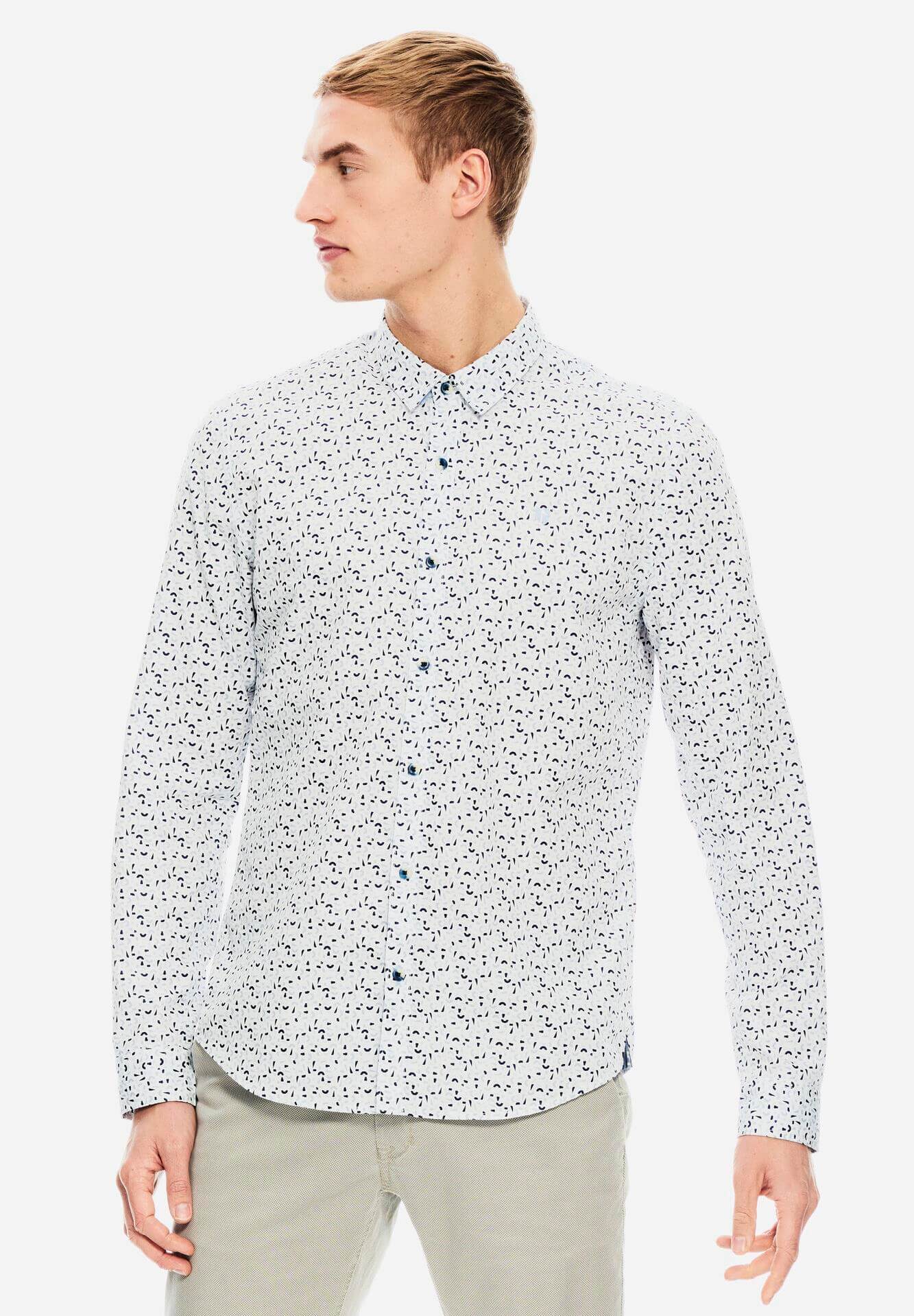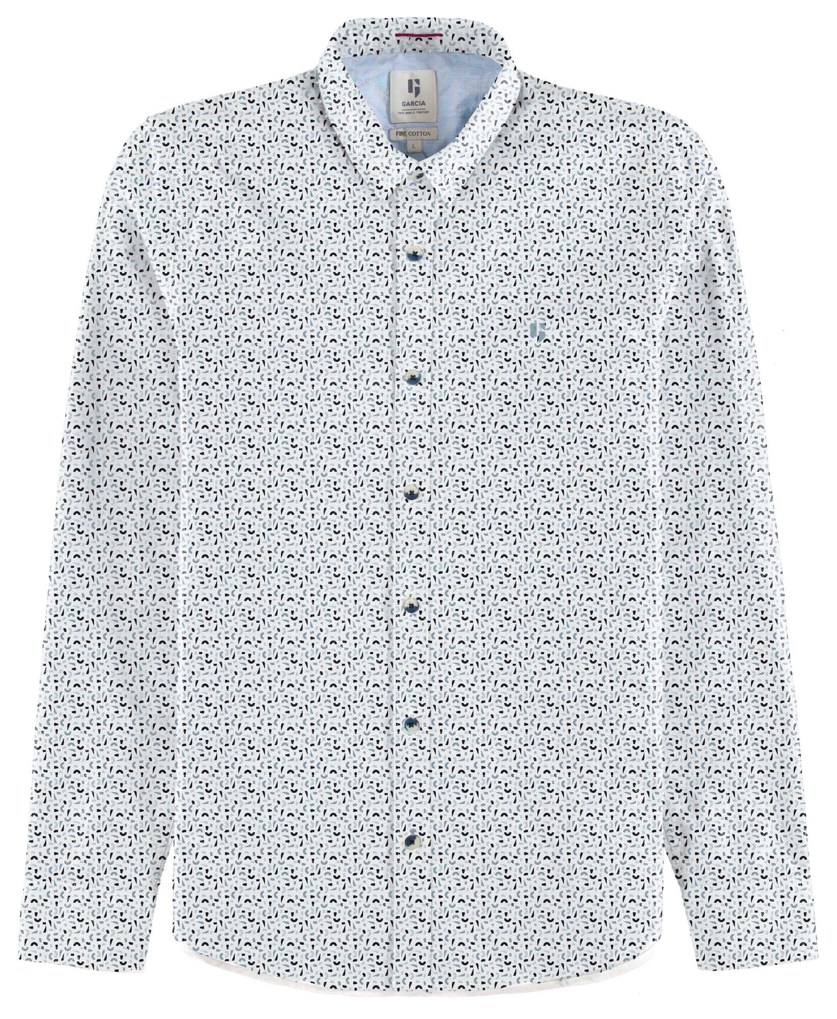 A Garcia Jeans foi lançada em 1977, pelas mãos de Maurizio e Isabella Gracia, oferece produtos de qualidade superior, que contam histórias através das suas coleções. Assim é esta camisa branca c/ estampado da Garcia. Mangas compridas com punhos de botão e gola de bico. Combina com calça de sarja para baixo e por cima um casaco ou blusão. O manequim está a vestir o tamanho S.