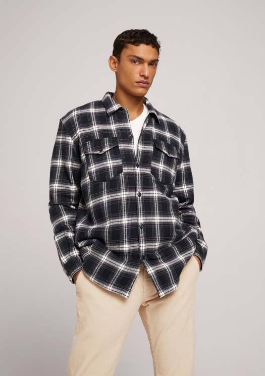 Conhecida por seu estilo urbano e design incomum, a Tom Tailor incorpora detalhes inovadores. Combinados com silhuetas inspiradas em streetwear e uma estética jovial. Assim é esta camisa / casaco xadrez c/ pelo da Tom Tailor. Apresenta mangas compridas e gola de bico. A parte de trás é lisa. Para parte de baixo combina na perfeição com jeans, mas dentro do mesmo estilo. O modelo está a vestir o tamanho S.