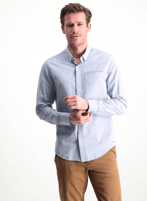 Nascido no meio do glamour italiano dos anos 70 e mais tarde com um toque holandês, a Garcia Jeans nunca esquece as suas raízes. Pense em roupas para um dia a dia especializado e acabamentos de qualidade, mesmo quando a marca opta por um caminho mais moderno para chegar lá. Esta camisa com bolso metido em tela com relevo de algodão em azul claro. Manga comprida com logo bordado e botão no punho. Na frente tem uma carcela com botões e um bolso metido mas do lado esquerdo. Combina para baixo com jeans mas sempre no mesmo estilo. O modelo está a vestir o M com bainha por fora, mas pode ser usada dentro da calça.