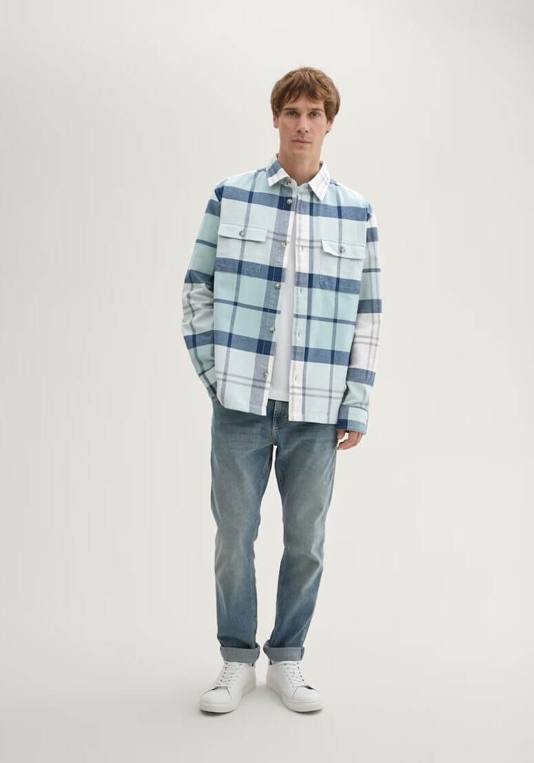 Conhecida por seu estilo urbano e design incomum, a Tom Tailor incorpora detalhes inovadores. Combinados com silhuetas inspiradas em streetwear e uma estética jovial. Assim é esta camisa xadrez azul da Tom Tailor. Apresenta mangas compridas com punho de botão, gola em bico, carcela com botões e bolsos de chapa na frente. Para parte de baixo combina na perfeição com jeans, mas dentro do mesmo estilo. O modelo está a vestir o tamanho S.