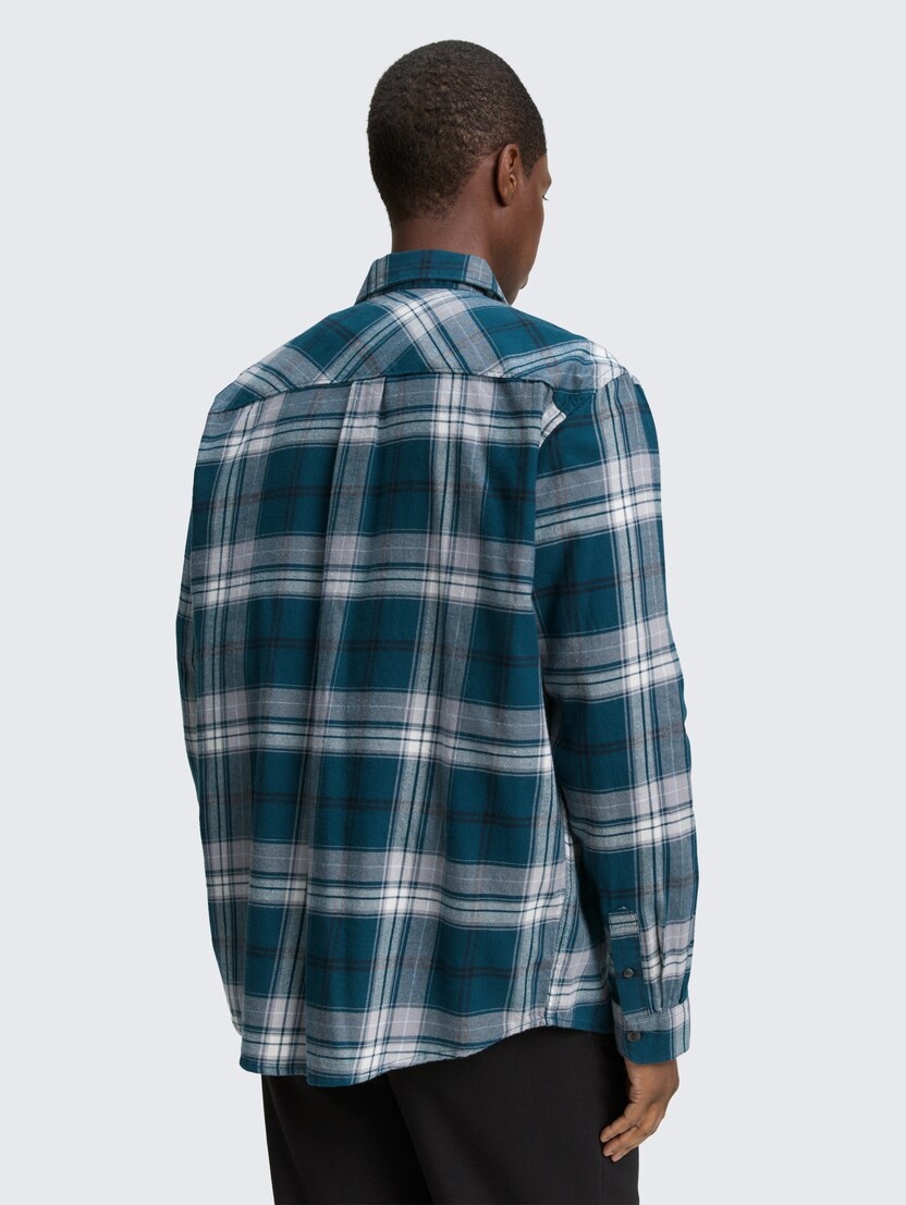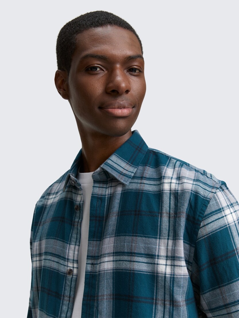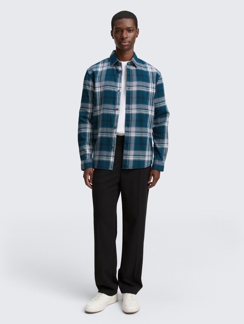Conhecida por seu estilo urbano e design incomum, a Tom Tailor incorpora detalhes inovadores. Combinados com silhuetas inspiradas em streetwear e uma estética jovial. Assim é esta camisa xadrez verde da Tom Tailor. Apresenta mangas compridas com punho de botão, gola em bico, carcela com botões brancos. Para parte de baixo combina na perfeição com jeans, mas dentro do mesmo estilo. O modelo está a vestir o tamanho S.