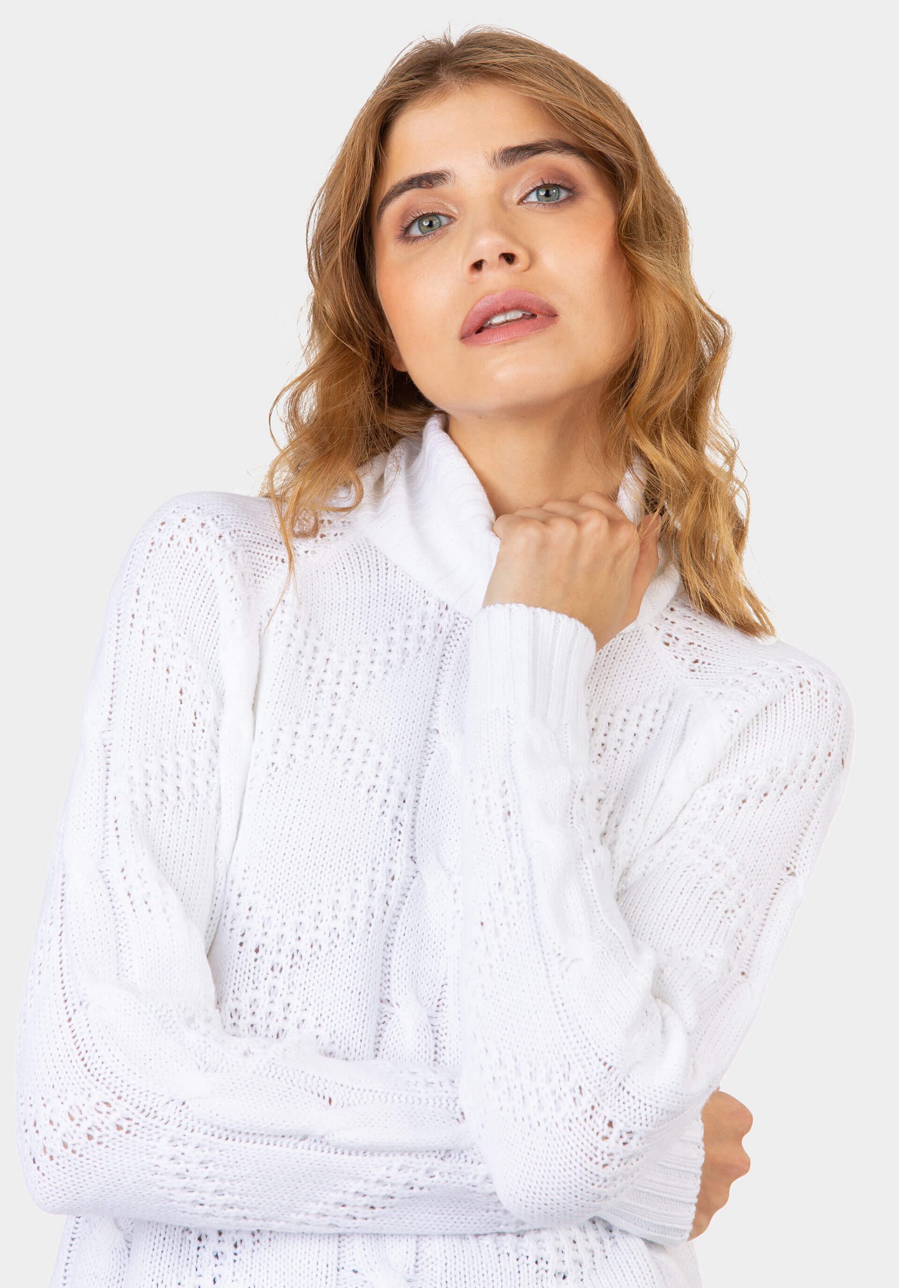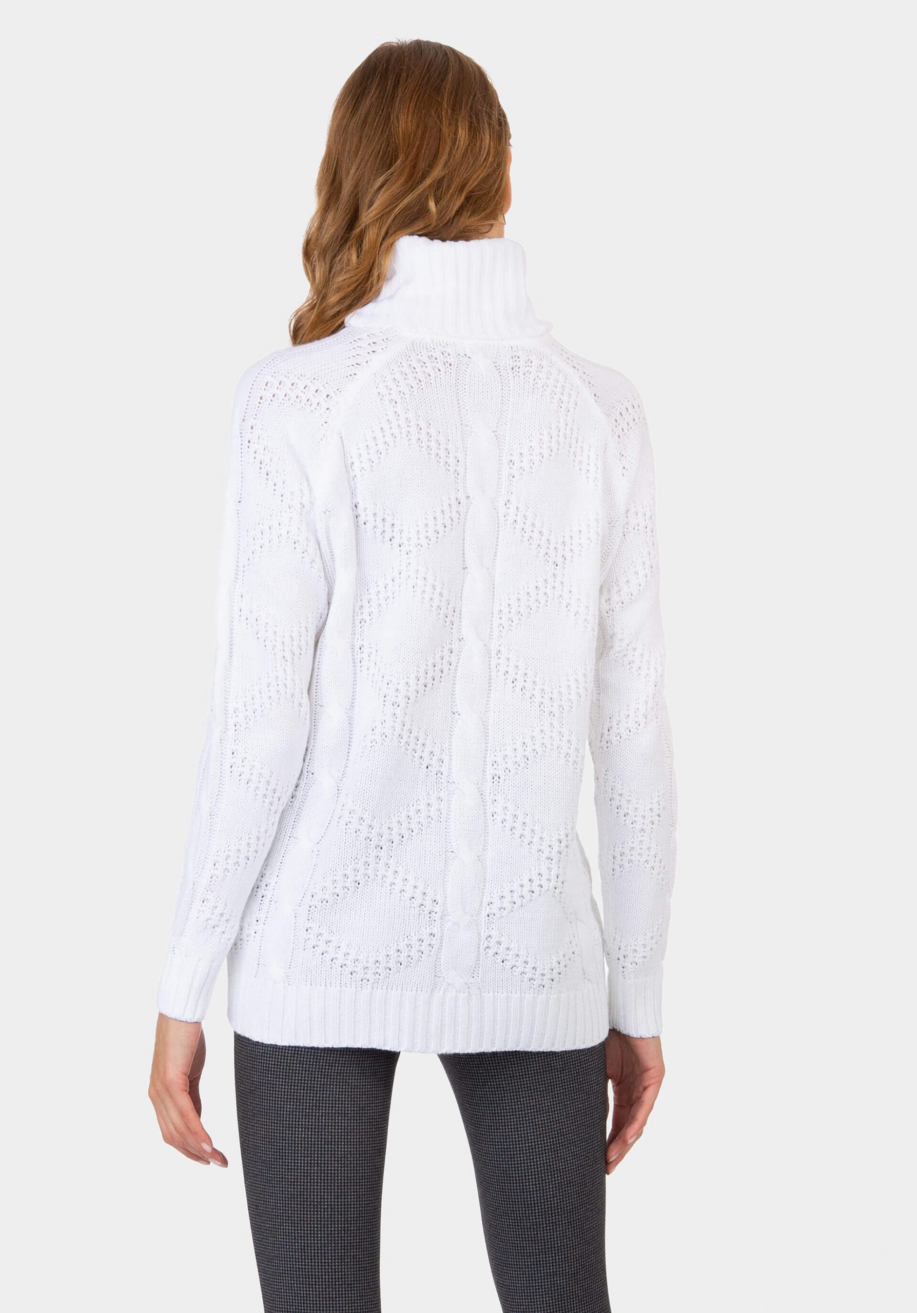 Conhecida por seu estilo urbano e design incomum, a Tiffosi incorpora detalhes inovadores. Combinados com silhuetas inspiradas em streetwear e uma estética jovial. A marca foi lançada em 1981 e oferece produtos de qualidade a preços acessíveis, que contam histórias e inspiram um estilo de vida. Assim é esta camisola branca de gola alta da Tiffosi. Apresenta mangas compridas com aperto no punho, tem decote redondo com gola alta e é elaborada em malha com entrelaçados. A parte de trás é lisa. Para parte de baixo combina na perfeição com jeans, mas dentro do mesmo estilo. A modelo está a vestir o tamanho S.