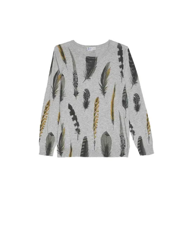 Projetado pela Md`m para mulheres decididas e atraentes, inspira-se nesta coleção em viagens ao redor do mundo. Pense em roupas brilhantes e bonitas, com prints únicos. Bordados inconfundíveis, que a levarão bela até ao final da jornada da trabalho. Assim é esta camisola cinza com print folhas da Md`m. Tem mangas compridas, decote redando, com rib nos punhos e na bainha. Elaborada a partir de fio com mistura de poliamida, acrílico e outras fibras. Pode ser usado com blusa ao camisa por dentro, além disso, pode combinar com jeans para parte de baixo. A modelo está a vestir o tamanho 36.