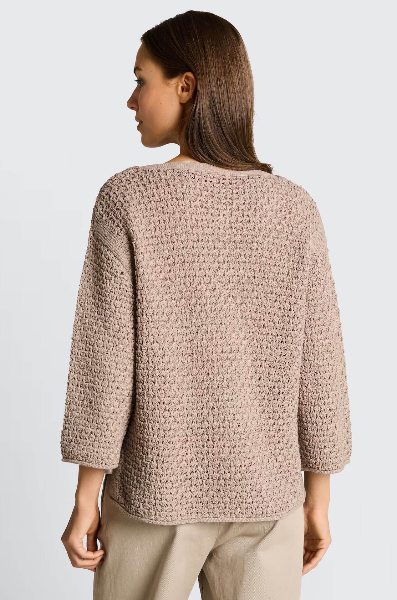 Conhecida por seu estilo urbano e design incomum, a Tom Tailor incorpora detalhes inovadores. Combinados com silhuetas inspiradas em streetwear e uma estética jovial. Assim é esta camisola cor terra da Tom Tailor. Apresenta decote redondo e manga comprida. Para parte de baixo combina na perfeição com calça, mas dentro do mesmo estilo. A modelo está a vestir o tamanho S.