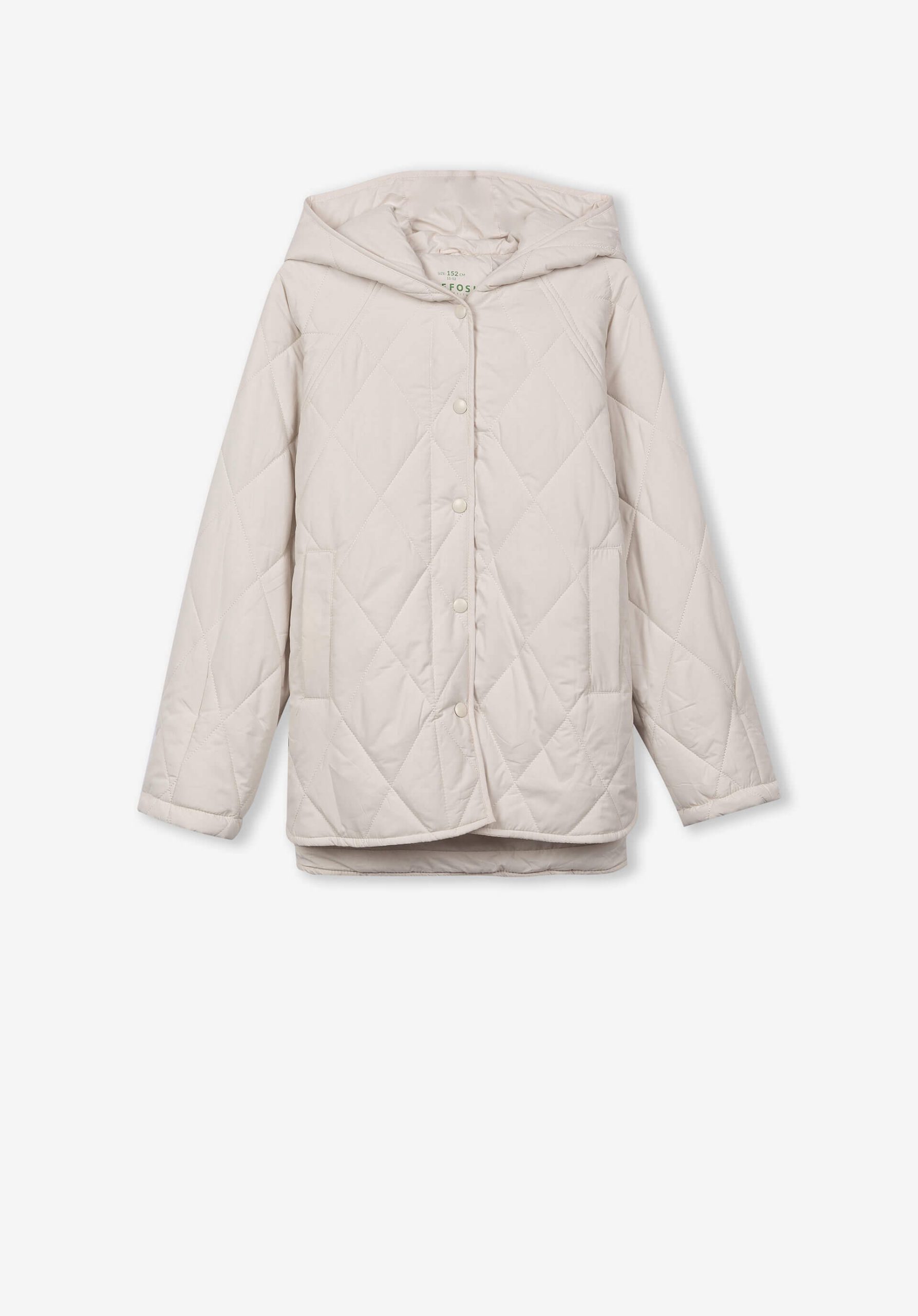 Pense em silhuetas dos anos 80, painéis pesados, denim super skinny e estampas de bandana. Pois bem essa era voltou aos dias de hoje. Assim é este casaco acolchoado branco da Tiffosi. Tem capuz, bolsos e molas na frente. Para parte de baixo combina na perfeição com jeans mas a dar com o tom. A imagem está no tamanho 9-10 anos /140 cm.