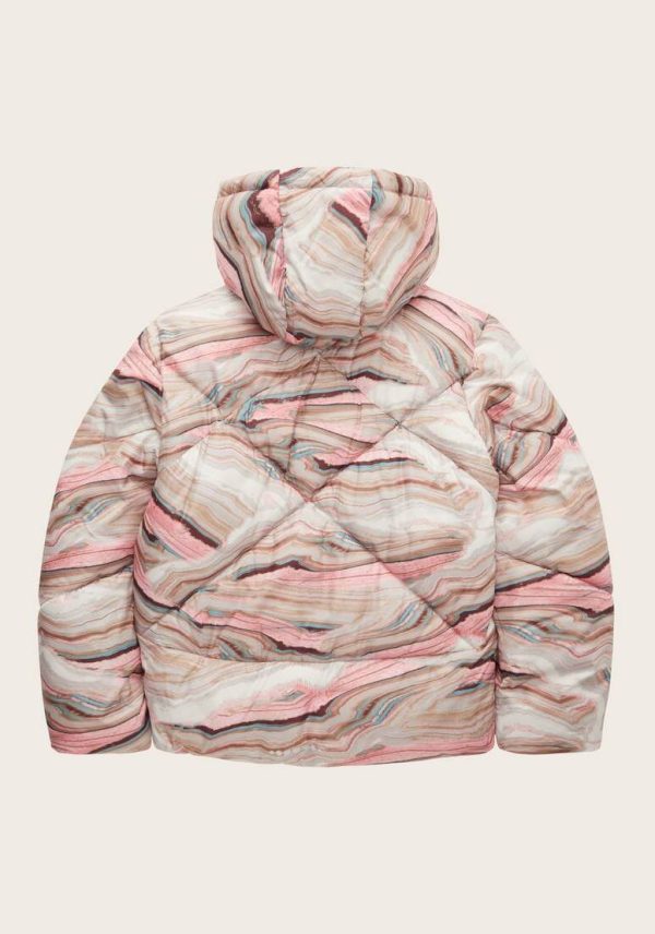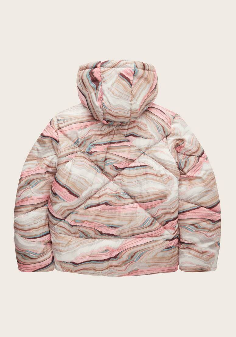 Pense em silhuetas dos anos 80, painéis pesados, denim super skinny e estampas de bandana. Pois bem essa era voltou aos dias de hoje. Conhecida por seu estilo urbano e design incomum, a Tom Tailor incorpora detalhes nativos holandeses. Assim é este casaco acolchoado c/ print rosa da Tom Tailor. Tem capuz, bolsos e manga comprida. Para parte de baixo combina na perfeição com jeans mas a dar com o tom. A imagem está no tamanho 9-10 anos /140 cm.