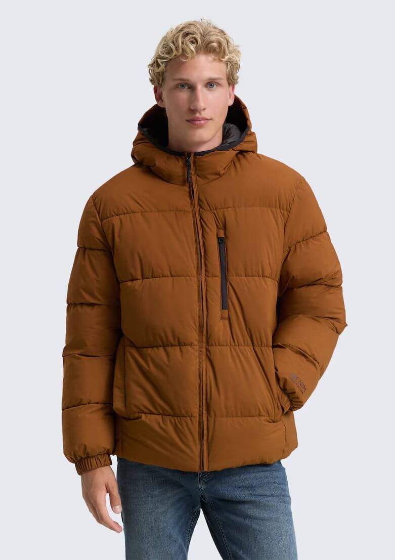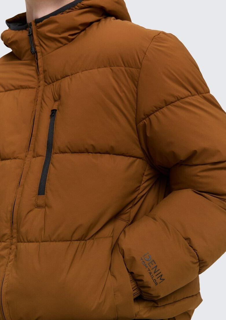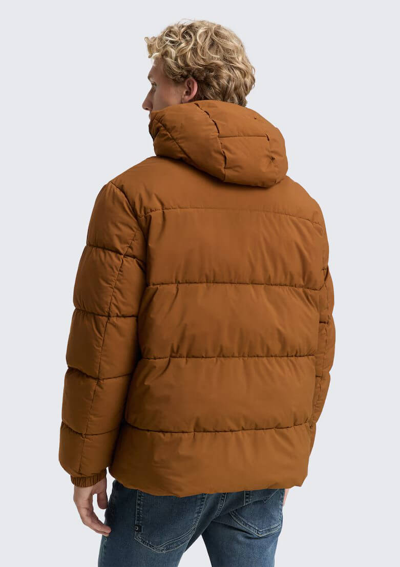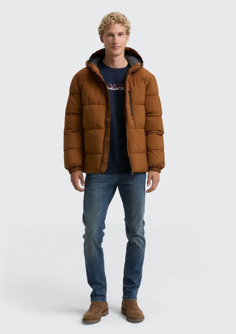 Conhecida por seu estilo urbano e design incomum, a Tom Tailor incorpora detalhes inovadores. Combinados com silhuetas inspiradas em streetwear e uma estética jovial. Assim é este casaco acolchoado camel da Tom Tailor. Apresenta mangas compridas, bolsos, fechos, decote redondo e capuz. Para parte de baixo combina na perfeição com jeans, mas dentro do mesmo estilo. O modelo está a vestir o tamanho S.