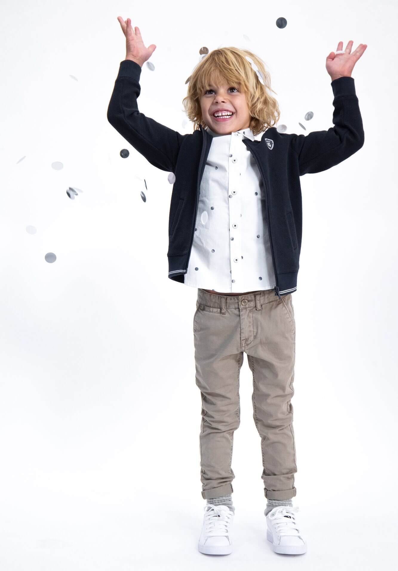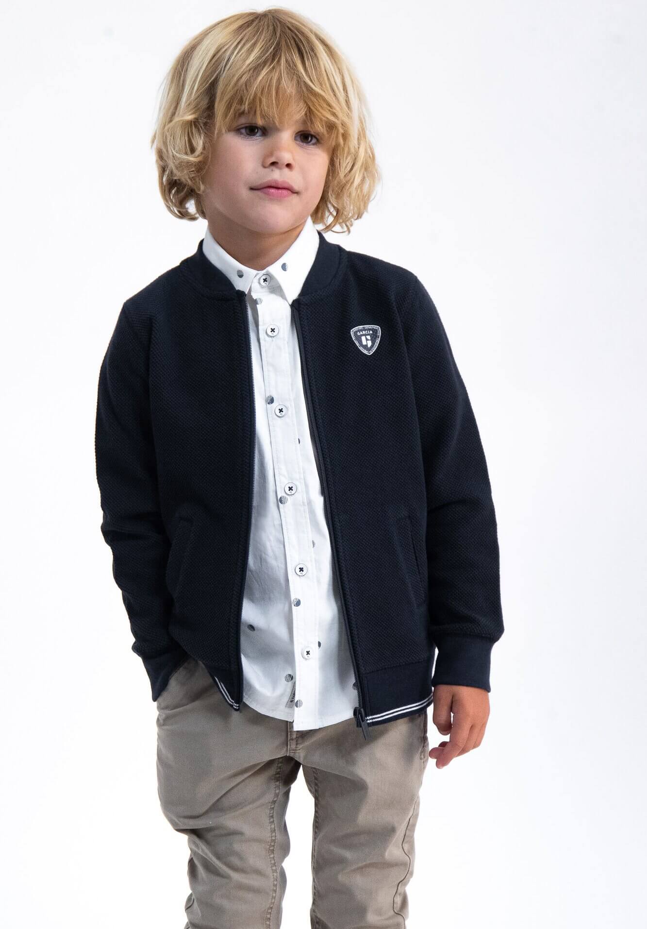Combinando a história dos fundadores da Garcia Jeans, Maurizio e Isabella Gracia, as suas coleções produzem uma seleção forte de roupas de dia a dia que inspirou o amor do fundador de fazer com que os meninos parecessem mais bonitos e fofos no seu dia-a-dia. Assim é este casaco azul c/ fecho da Garcia Jeans. Produzido em tela de algodão e poliéster. Tem um decote redondo, com rib na manga comprida, bolsos metidos e fecho na frente. Na costa tem corte direito. Este casaco combina para parte de baixo com jeans mas dentro do mesmo estilo. O modelo está a vestir o 7-8 anos / 138 cm.