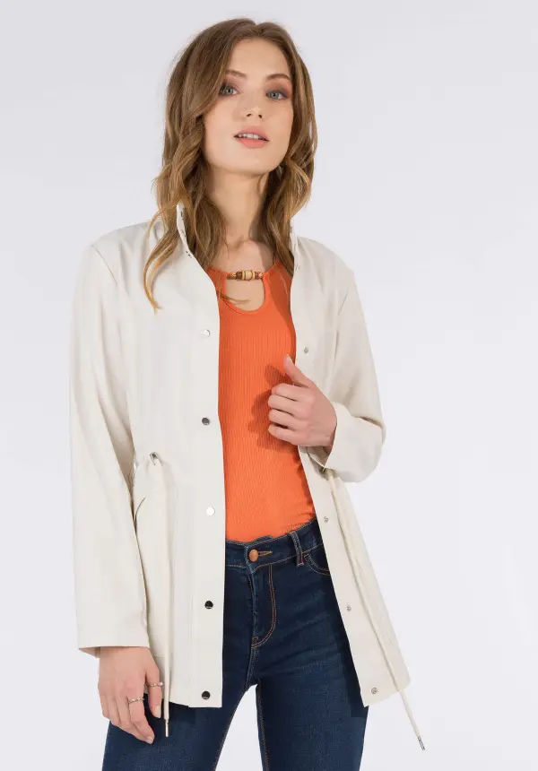 Conhecida por seu estilo urbano e design incomum, a Tiffosi incorpora detalhes inovadores. Combinados com silhuetas inspiradas em streetwear e uma estética jovial. A marca foi lançada em 1981 e oferece produtos de qualidade a preços acessíveis, que contam histórias e inspiram um estilo de vida. Assim é este casaco bege c/ atilho na cintura da Tiffosi em poliéster. Apresenta manga comprida. Bolsos laterais e bolsos falsos à frente. Fecho frontal de correr oculto por carcela e botões metálicos. Cordão ajustável na cintura. Para parte de baixo combina na perfeição com jeans, mas dentro do mesmo estilo. A modelo está a vestir o tamanho S.