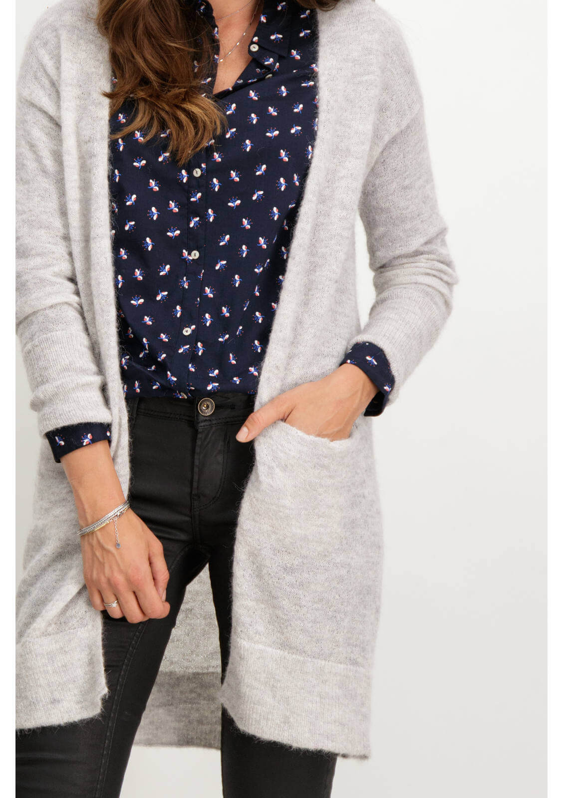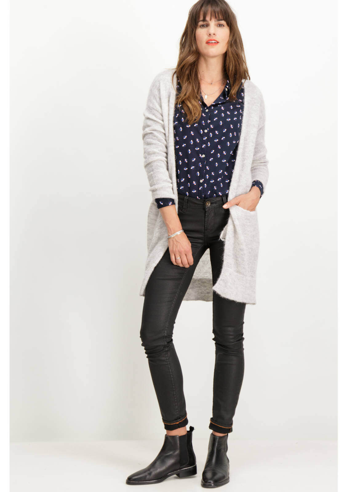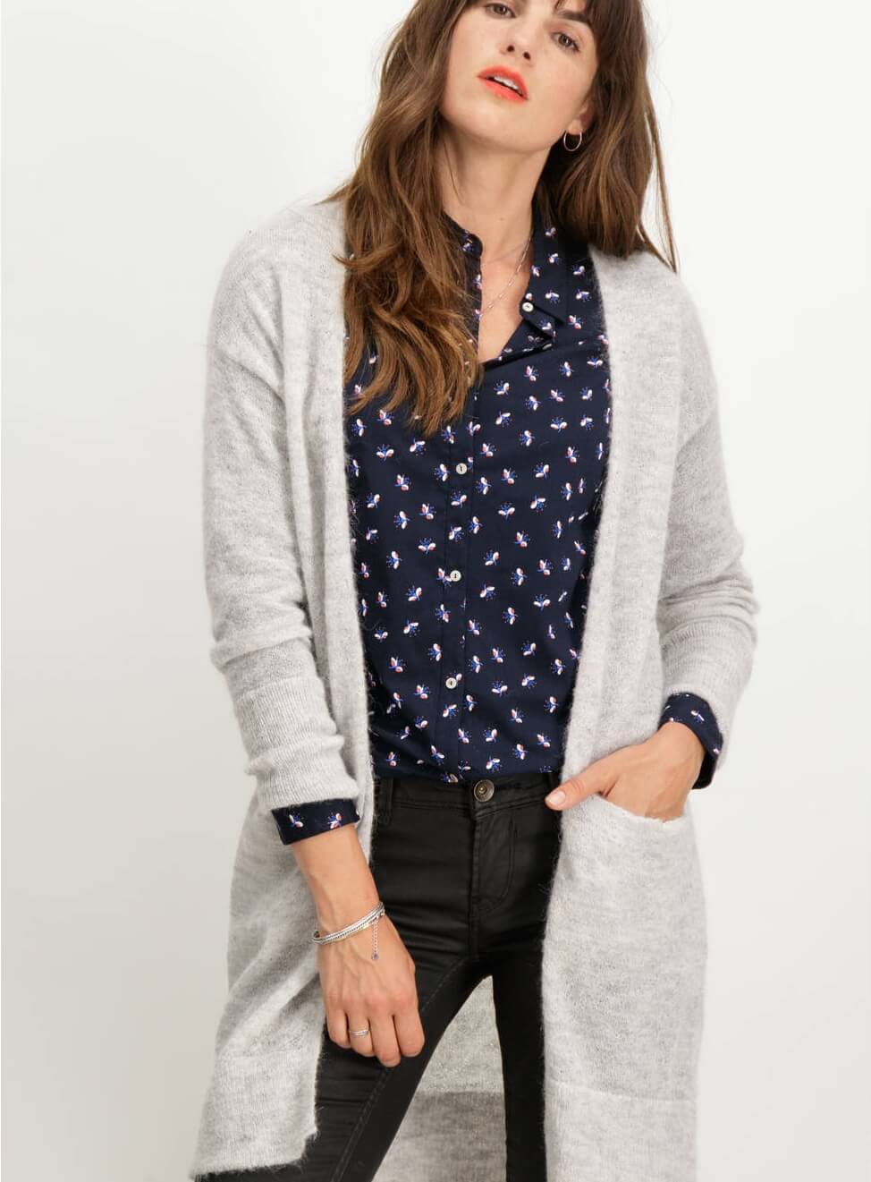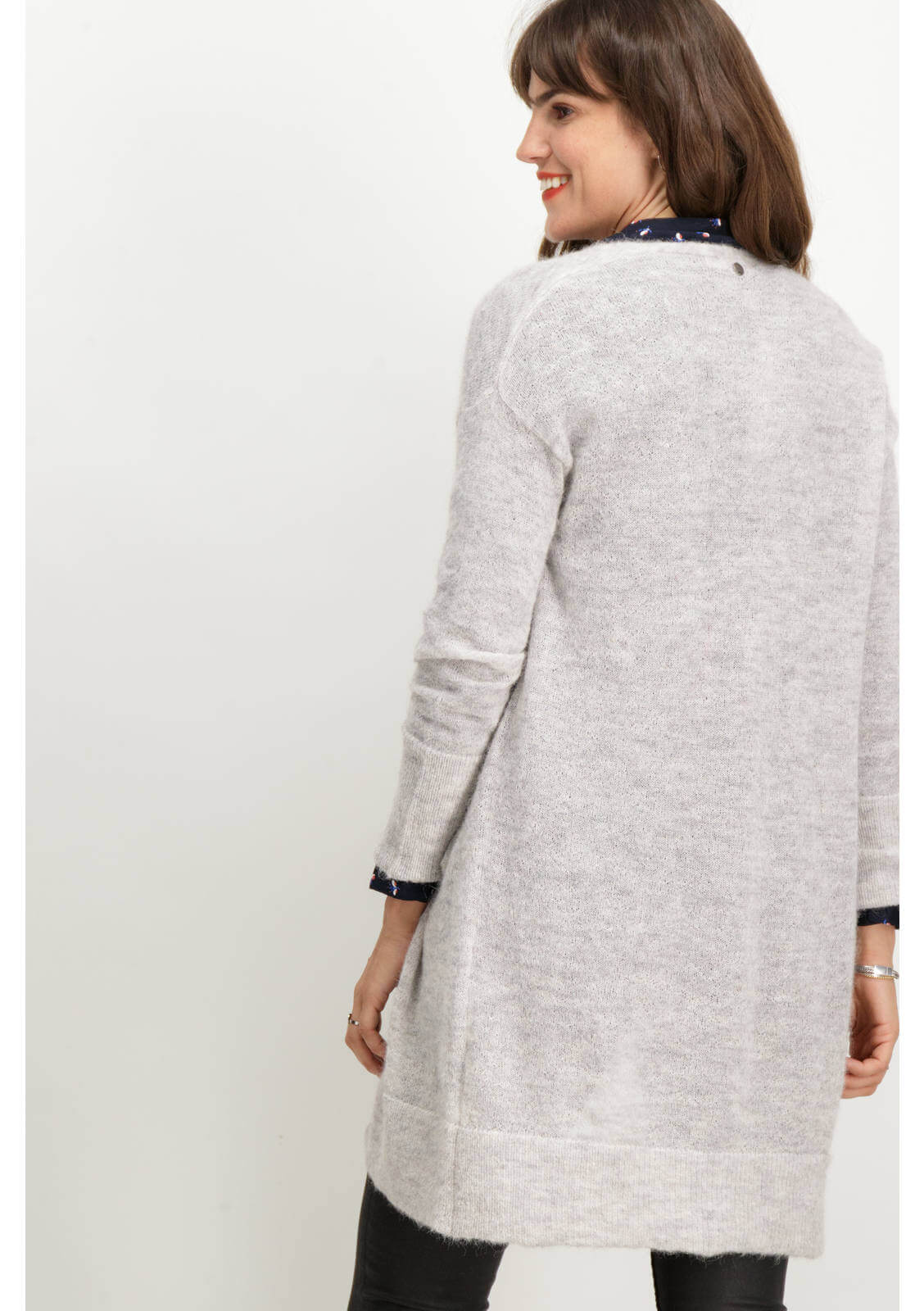 Combinando a história dos fundadores da Garcia Jeans, Maurizio e Isabella Gracia, a mais recente coleção O/I 18/19 da marca produziu uma seleção forte de roupas de dia a dia que inspirou o amor do fundador de fazer com que as mulheres parecessem mais bonitas no seu quotidiano. Assim é este casaco branco malha alpaca da Garcia Jeans. Produzido em fio de alpaca, acrílico e poliamida branco. Com decote em bico, mangas compridas com punho, dois bolsos metidos e sem botões na frente. Combina para dentro com camisas ou túnicas mas dentro do mesmo estilo. A modelo está a vestir o S.