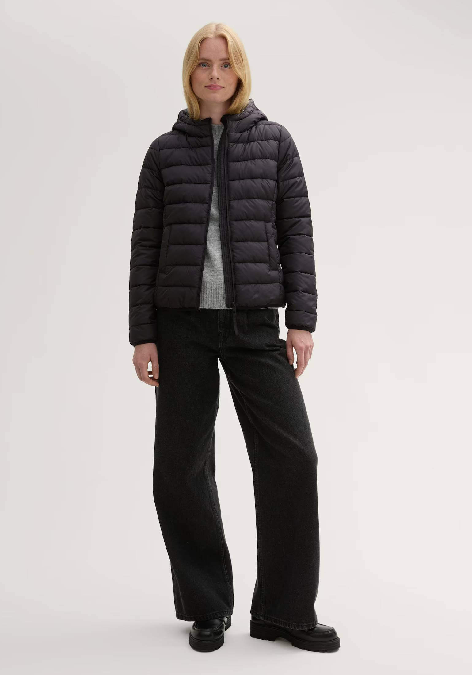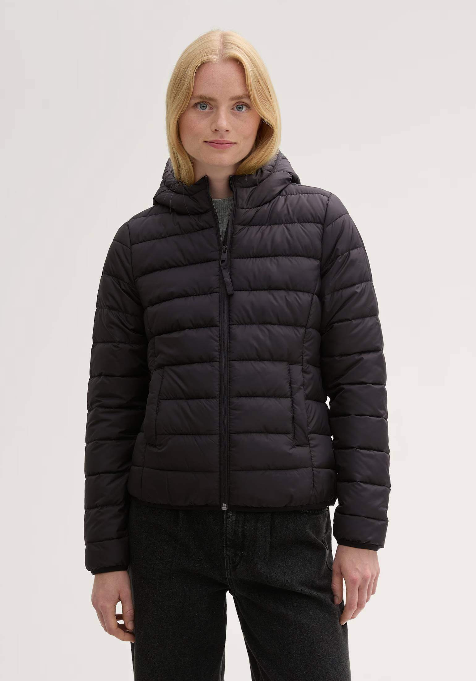 Conhecida por seu estilo urbano e design incomum, a Tom Tailor incorpora detalhes inovadores. Combinados com silhuetas inspiradas em streetwear e uma estética jovial. Assim é este casaco preto c/ capuz da Tom Tailor. Apresenta mangas compridas, bolsos e capuz. Para parte de dentro combina na perfeição com t-shirt ou camisa, mas dentro do mesmo estilo. A modelo está a vestir o tamanho S.