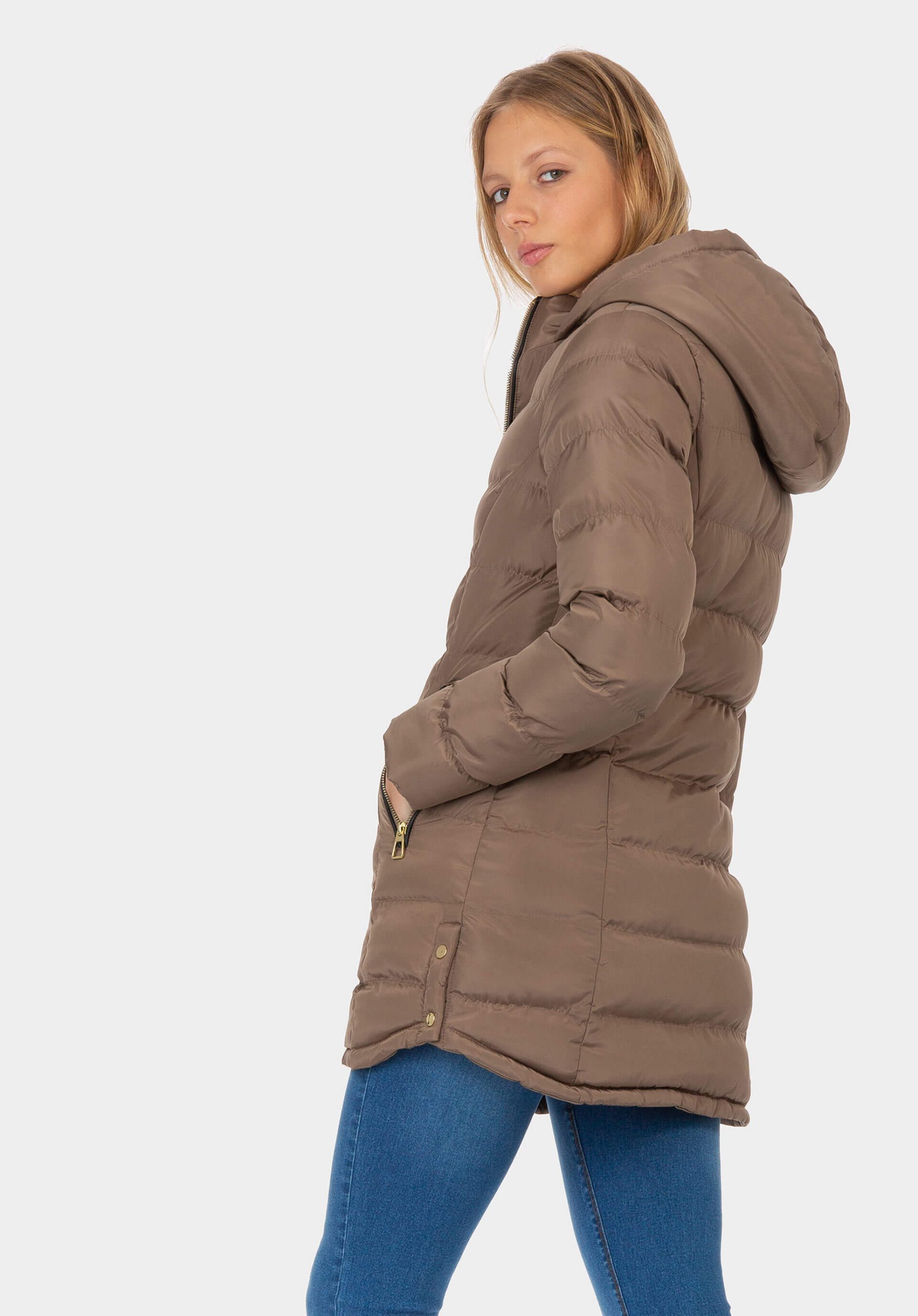 Conhecida por seu estilo urbano e design incomum, a Tiffosi incorpora detalhes inovadores. Combinados com silhuetas inspiradas em streetwear e uma estética jovial. A marca foi lançada em 1981 e oferece produtos de qualidade a preços acessíveis, que contam histórias e inspiram um estilo de vida. Assim é este casaco terra acolchoado c/ capuz da Tiffosi em poliéster. Apresenta mangas compridas, fecho metálico de correr na frente, bolsos metidos na frente com fecho de metal. A parte de trás é lisa e tem capuz com pelo no interior. Para parte de baixo combina na perfeição com jeans, mas dentro do mesmo estilo. A modelo está a vestir o tamanho S.