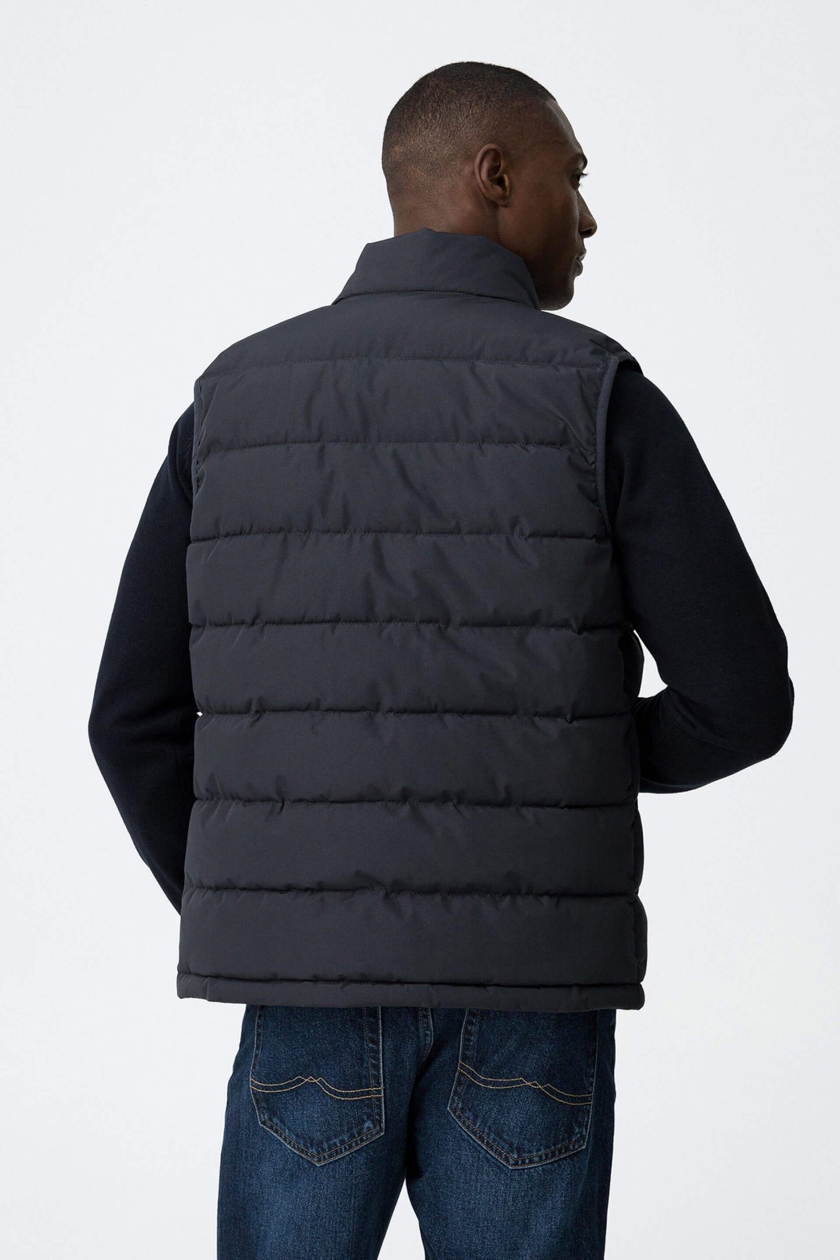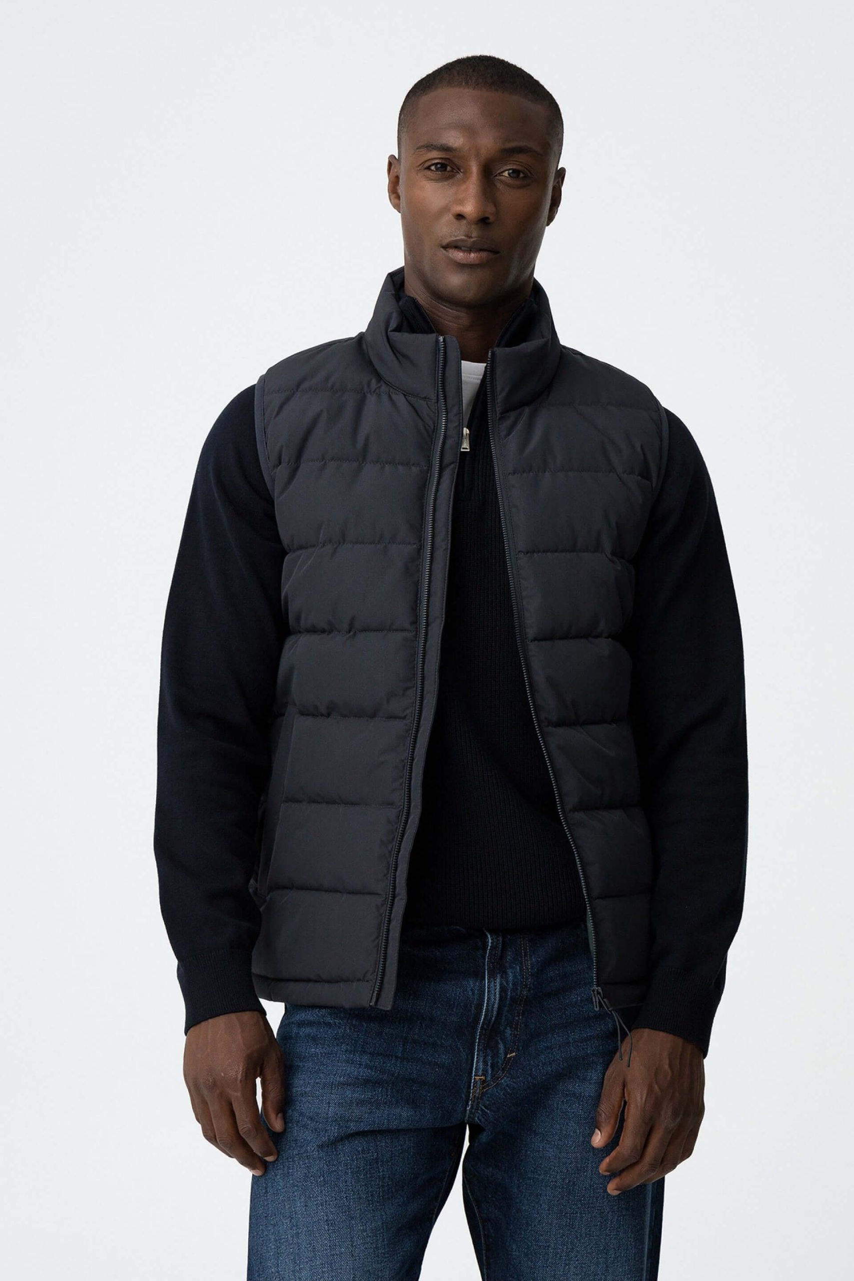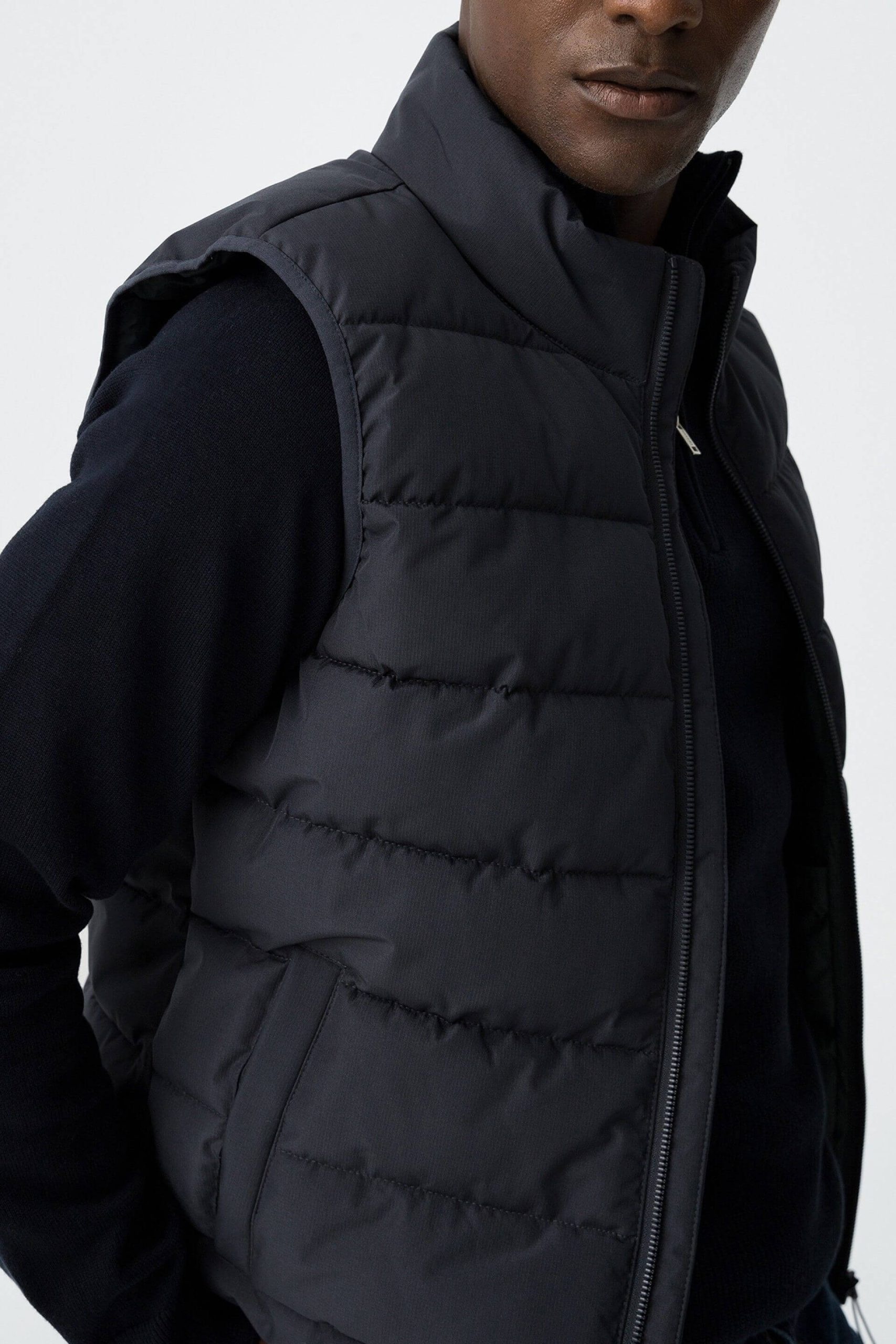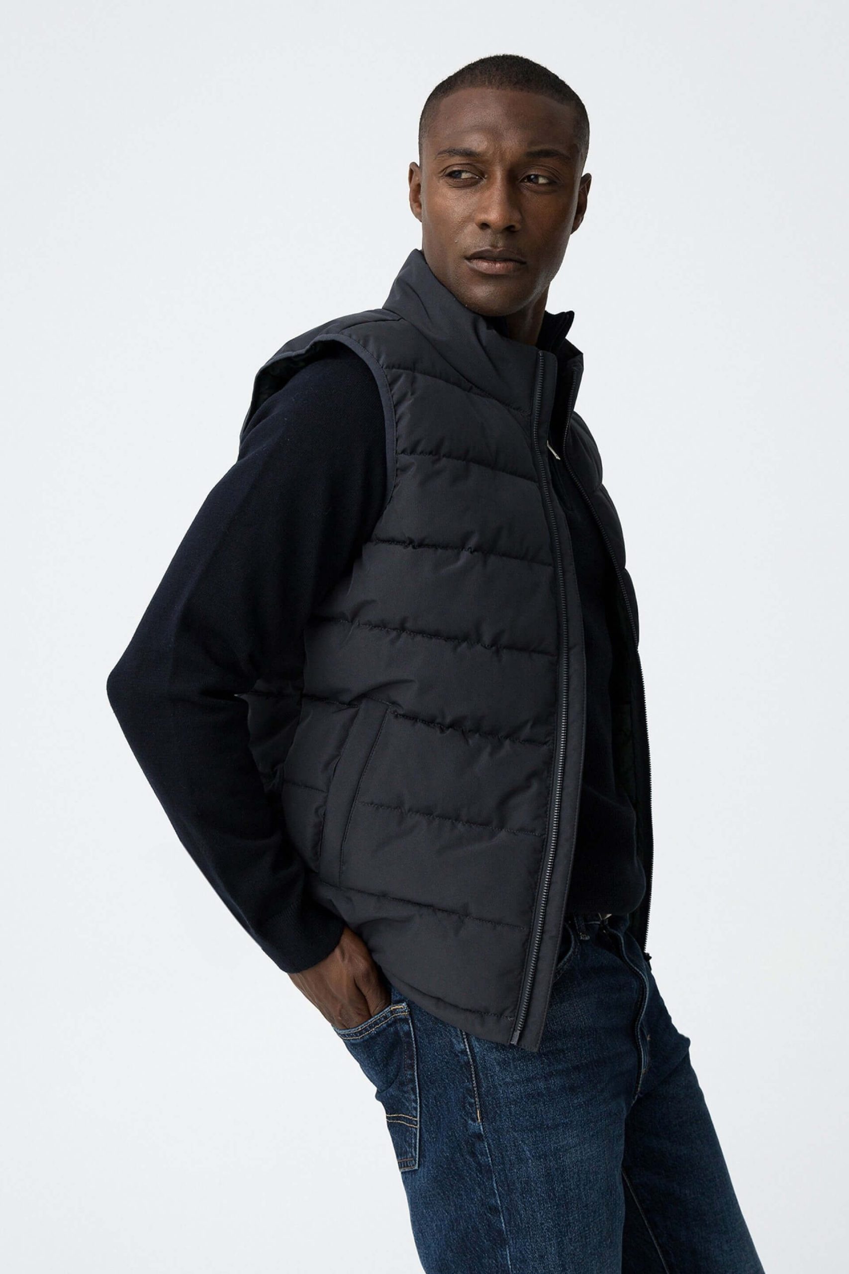 Conhecida por seu estilo urbano e design incomum, a Tiffosi incorpora detalhes inovadores. Assim é este colete acolchoado azul da Tiffosi. Tem bolsos metidos e fecho de correr. Para parte de baixo combina na perfeição com jeans, mas dentro do mesmo estilo. O modelo está a vestir o M.
