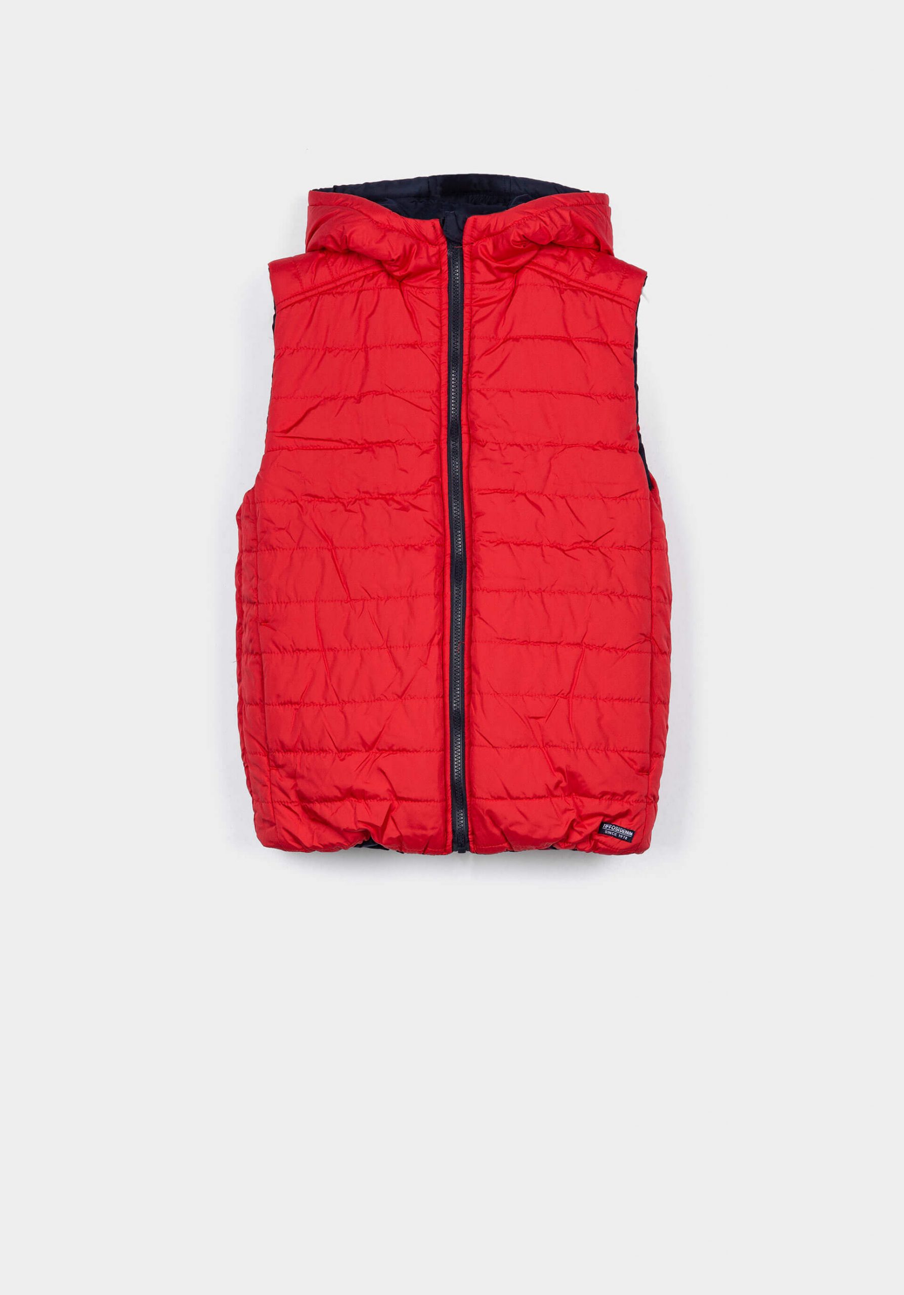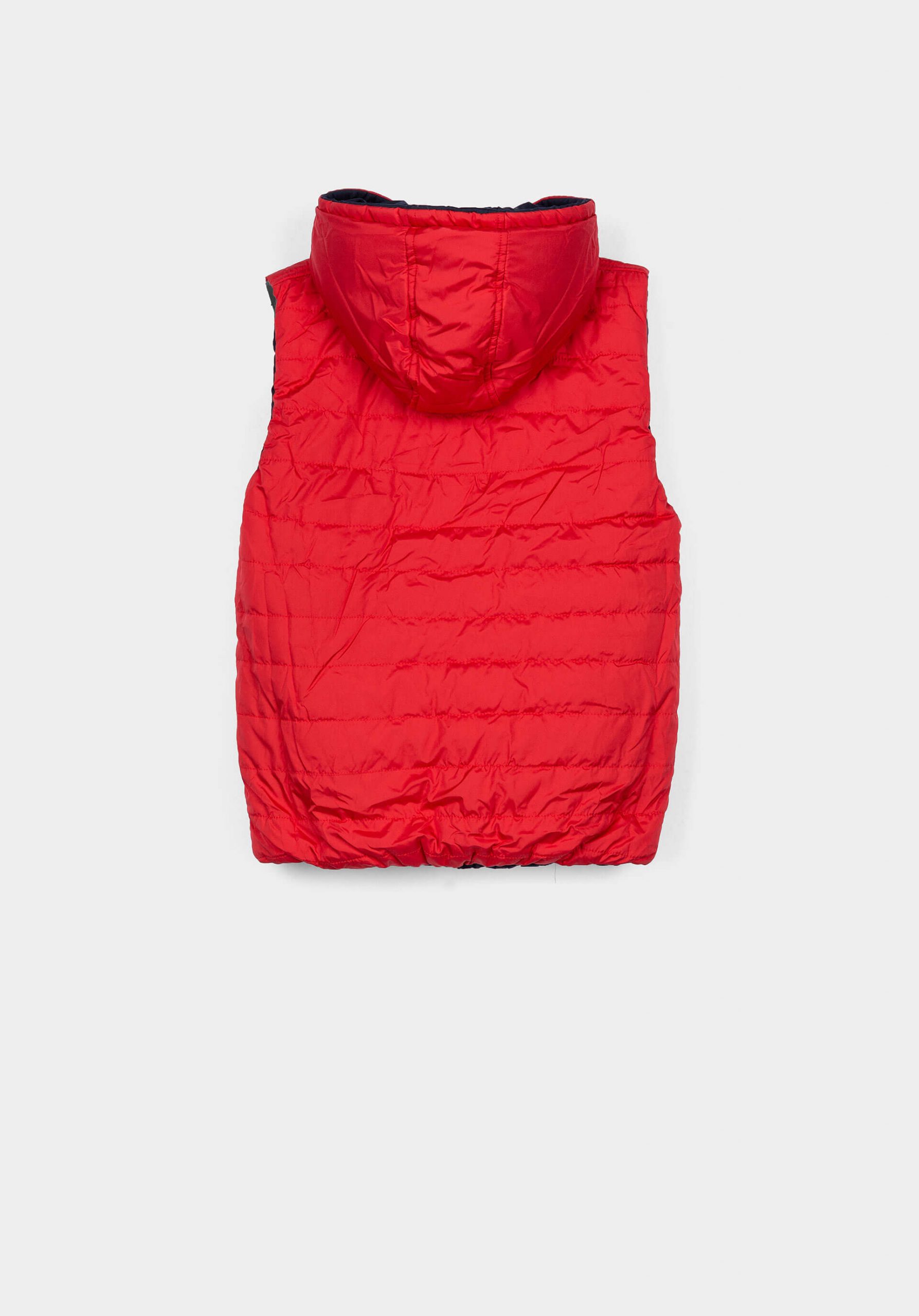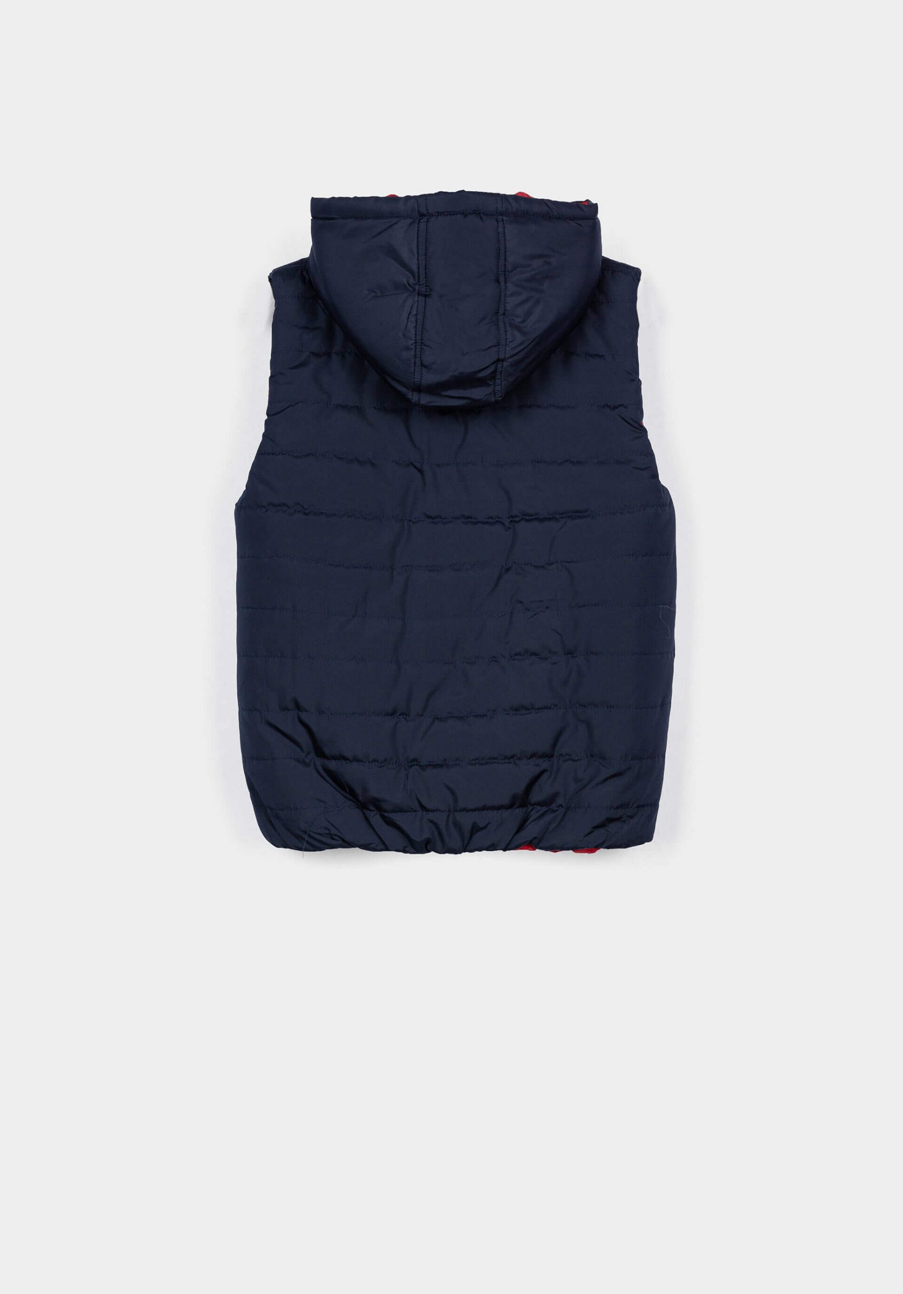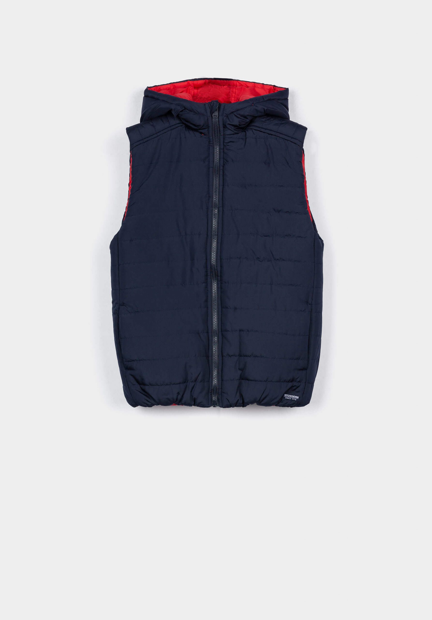 Conhecida por seu estilo urbano e design incomum, a Tiffosi incorpora detalhes inovadores. Combinados com silhuetas inspiradas em streetwear e uma estética jovial. Assim é este colete acolchoado reversível da Tiffosi. Tem capuz, dois bolsos metidos na frente, mas sem aperto. Fecho de correr na frente. Para parte de baixo combina na perfeição com jeans, mas dentro do mesmo estilo. A imagem está no tamanho 9-10 anos / 140 cm.